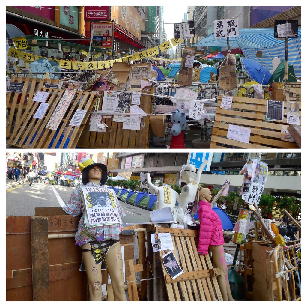 旺角占領区!バリケードのカオスな様子に、なんともいえない旺角らしさが… マネキンこわい(´・ω・`)
