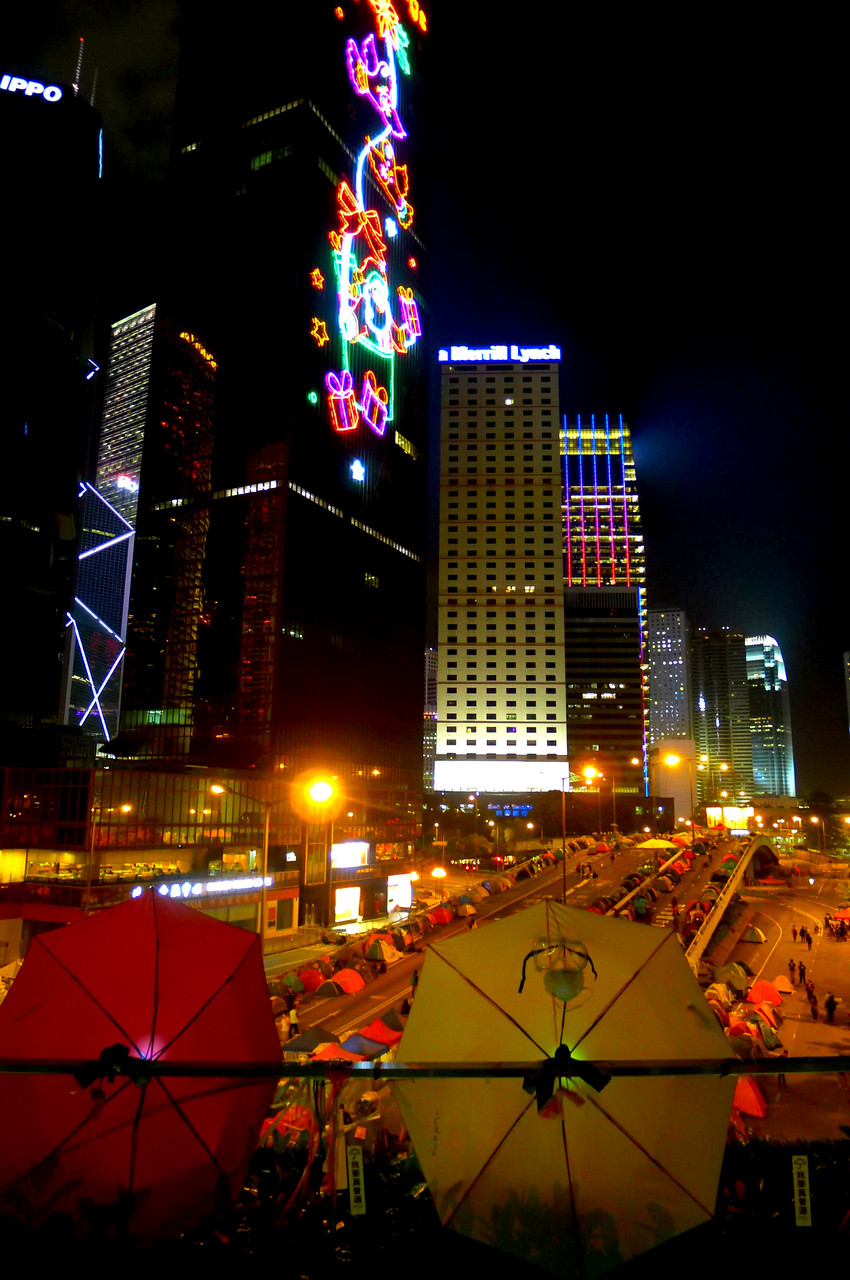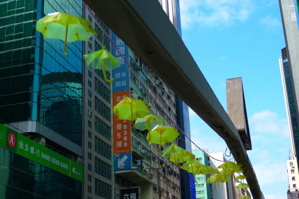 — HKDemoNow (@hkdemonow) 2014, 11月 24 旺角占領区の青空に映える黄色い雨傘。11月25日以降どういう展開になるかわかりませんが、衝突や事故なく、近隣住民の方にも迷惑かけず、普通選挙を得るための次へのステップに繋げられることを切に願います。