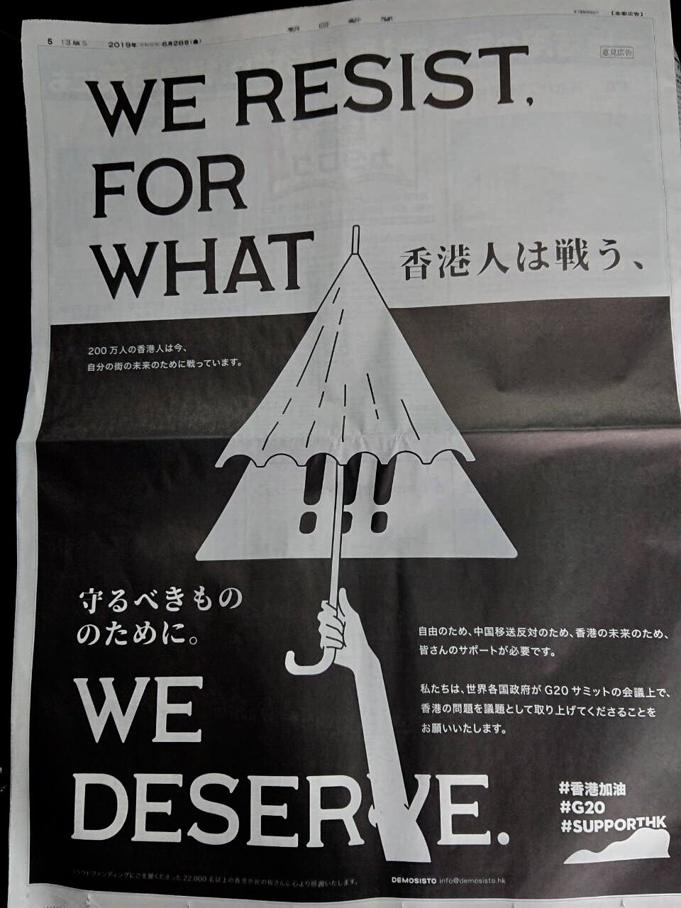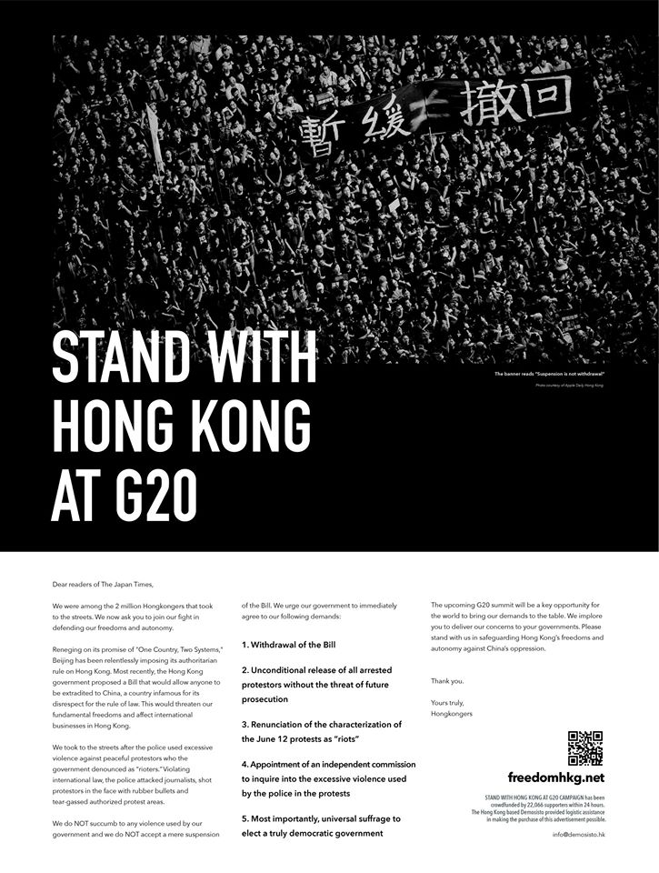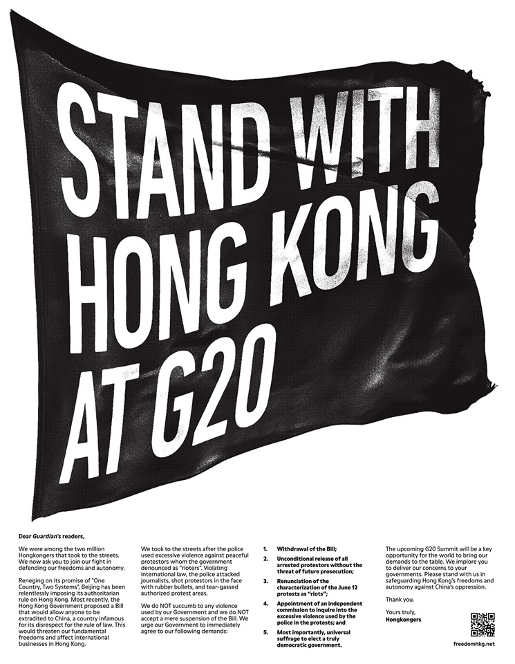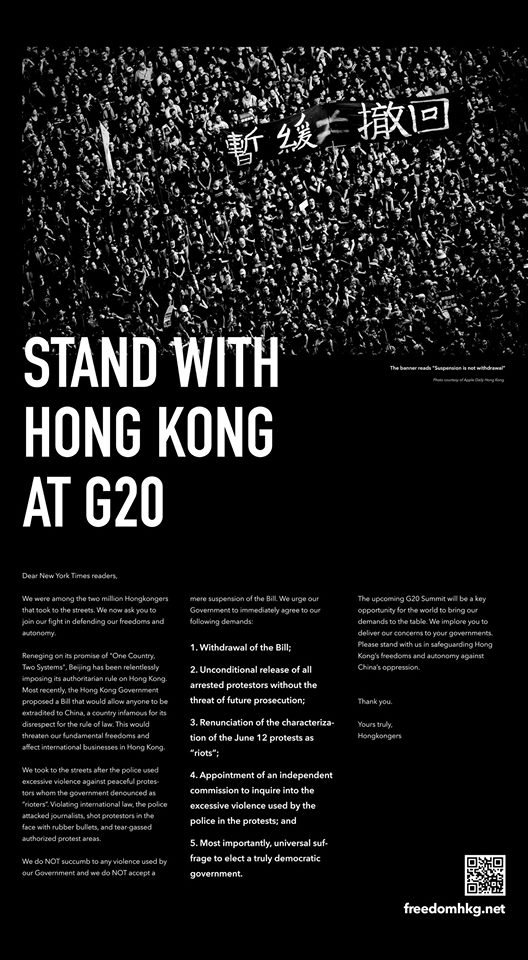 ¡ØStand with Hong Kong at G20¡Ù