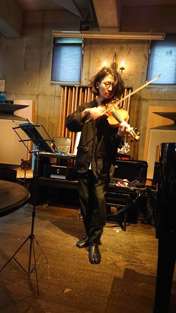千葉在住ミュージシャンで俊祐くんのバンド演奏をとなおーきーに声かける。初演奏は昨年天皇誕生日頃、千葉人とかけて「昭和っ千」妙名なおーきー5回目のこの日頑張れ〜。