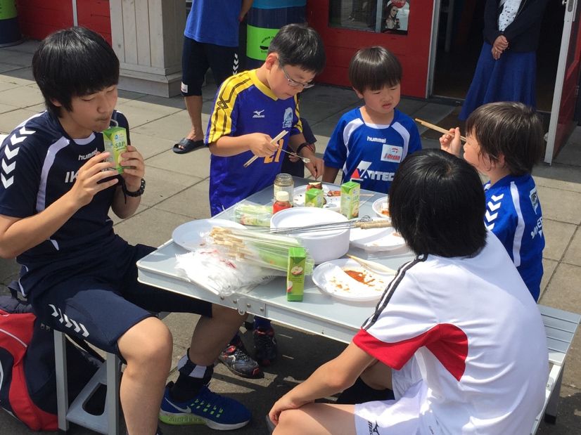 メンバーを入れ替えながら、2チームに分けて5対5の試合(20分ハーフ)を2試合ずつ行いました。