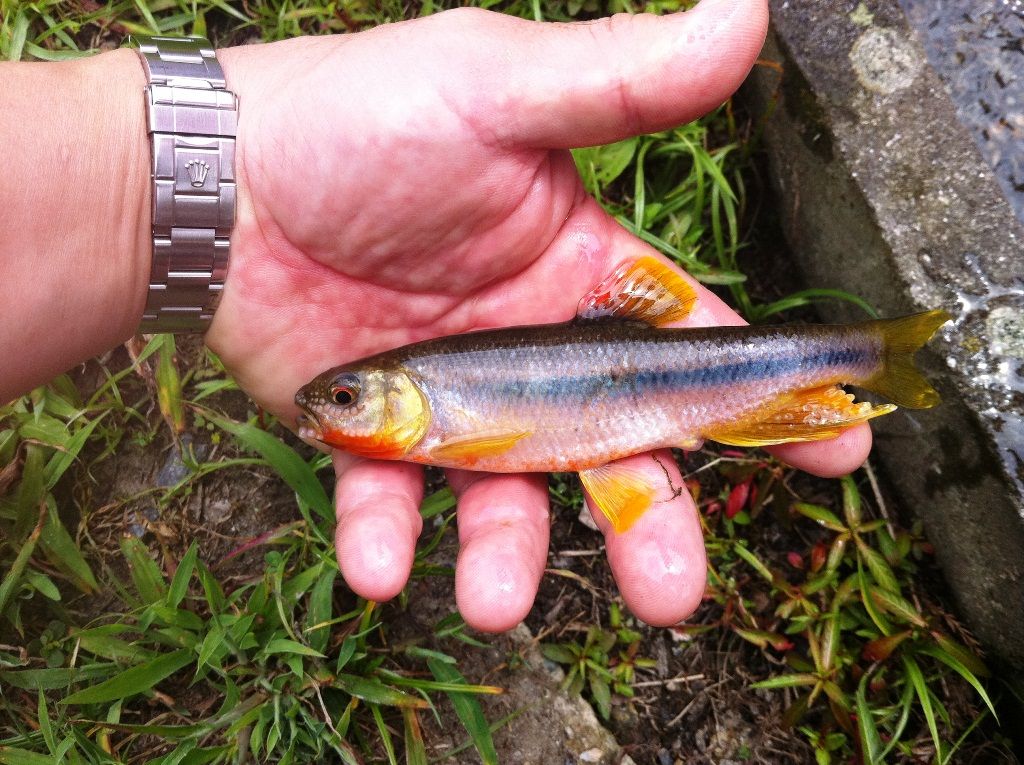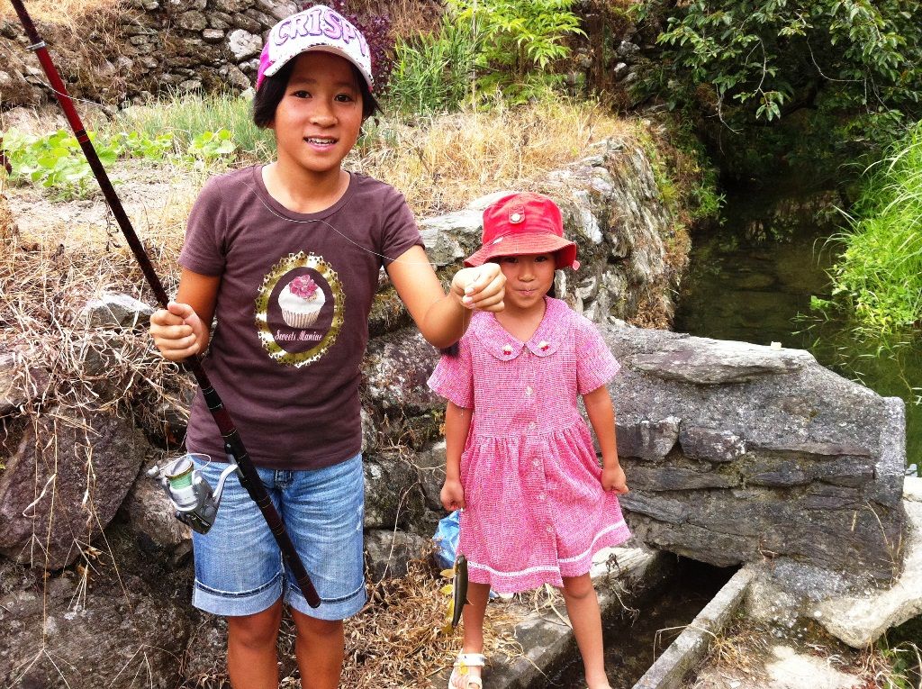 お盆休みで子供たちと田舎の川で魚釣りに興じました、