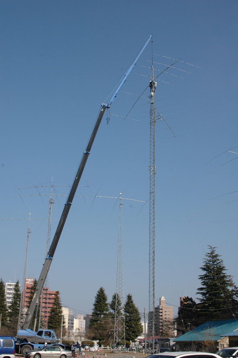 土曜日は,25tのラフターを呼んで,朝8時から17時まで作業.アンテナ下ろして,ローテータ交換などなど.1300MSAでは,もたなかったみたいなので,RC-10S.