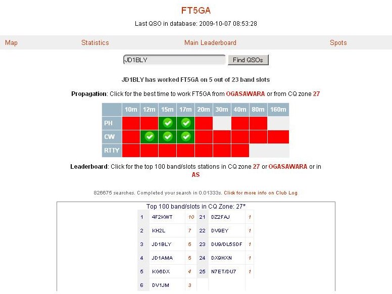 JD1BLY バンド・モードのQSO数(2009/9/29現在)