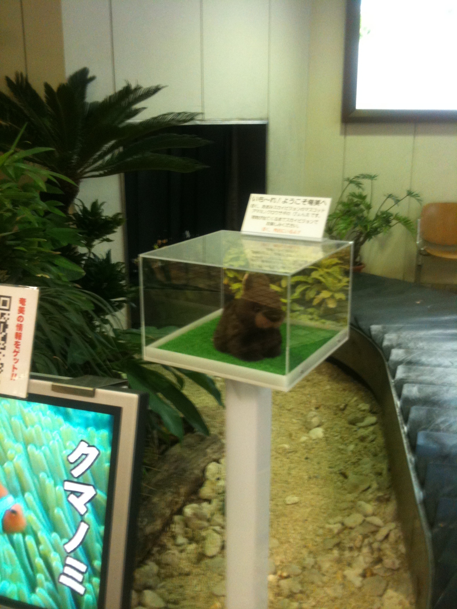 ではアマミノクロウサギのぬいぐるみがお出迎え.そのままレンタカーを借り,名瀬郵便局へ.