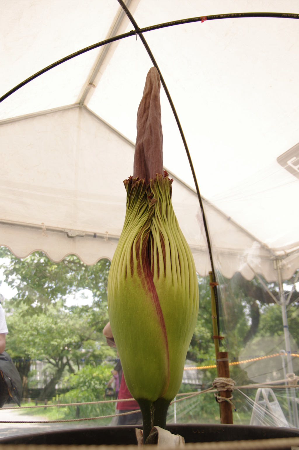 前回水曜日に行ったときはショクダイオオコンニャクの花が咲いていませんでしたが...木曜日の夕方に咲いたとのことで...本日行ってきました.