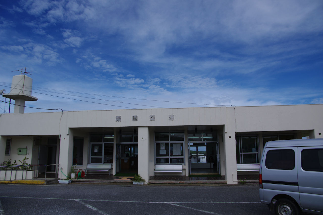 外から見た粟国空港.屋上に展望スペースが無いのが残念.