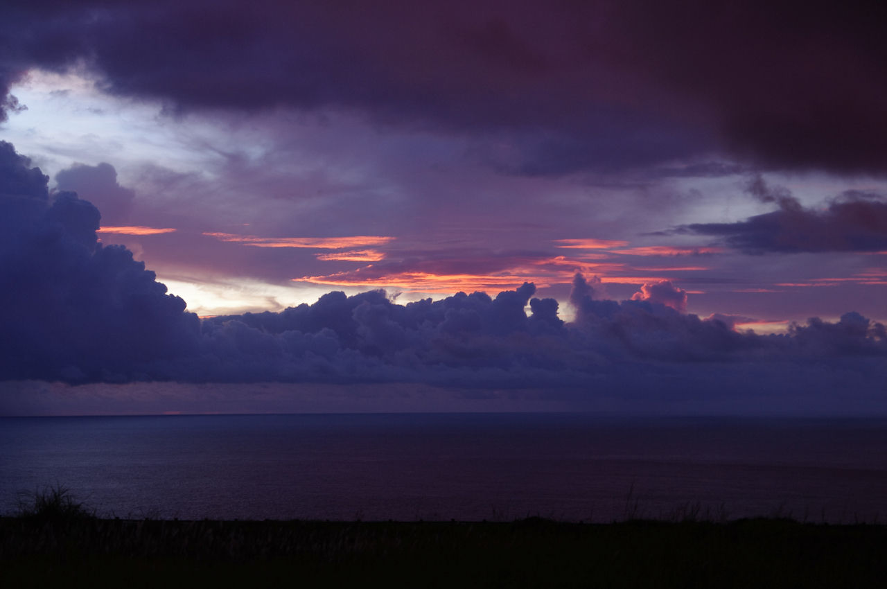 夕焼けがキレイです.空が紫,夕日を見ながら無線.