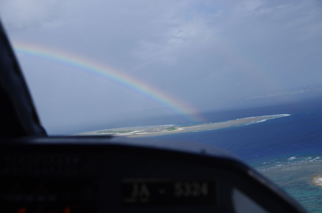 パイロットが,あっちあっちと指さすので見ると,虹が〜!!