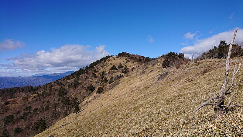 ・・・そして、振り返ると大室山まではさらにここから500mほど登る。このぽっこり山は別の山で大杉丸っていうらしいね。たしかに何本か杉の木が生えている。