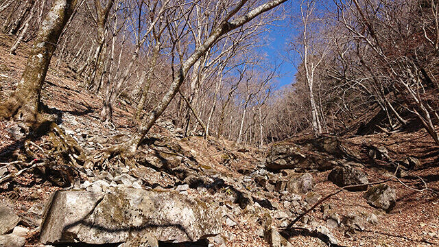 加入道山の手前から先は展望無し。白石峠からは山が日陰になってあまり雰囲気は良くない。