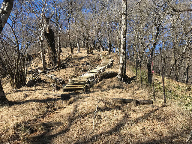 ここから加入道山へ向かうと途中の階段からも随所に富士山がみえる。ただ夕方過ぎてハレーション起こしてるけどね。