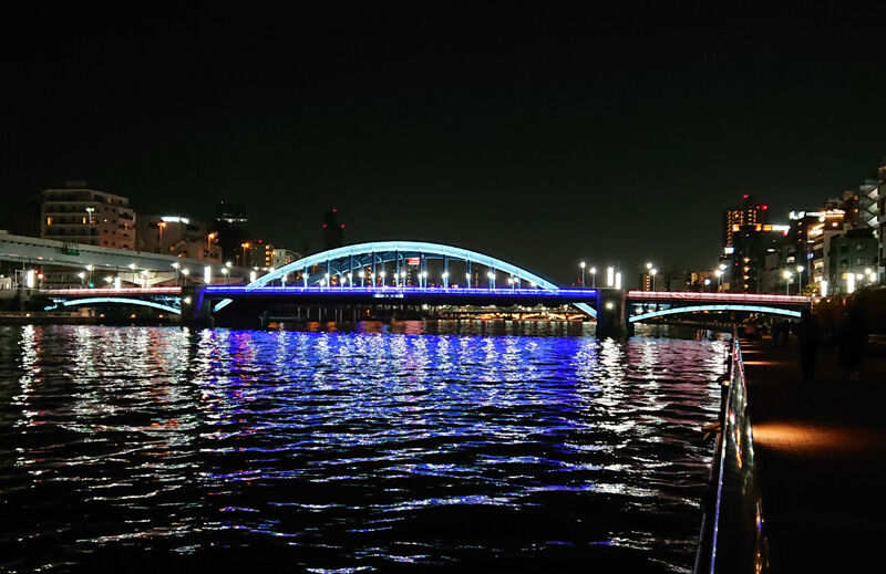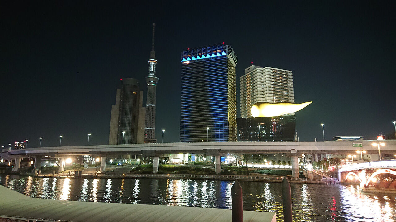 実はどうして隅田川を走破しようとしてたかというと、以前、浅草で仕事があったんで、ついでに吾妻橋見ておこうと思ったら、ライトアップされててしかも歩きやすい遊歩道を見つけたせい。