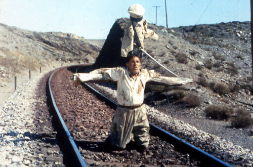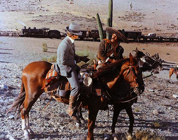 ▲メキシコ政府軍のお偉いさんが反政府ゲリラに掴まり人質状態に、ゲリラ側は汽車を停めて政府の武器を頂くのが狙いです。勇敢にも自分を轢いて逃げろと言いました。