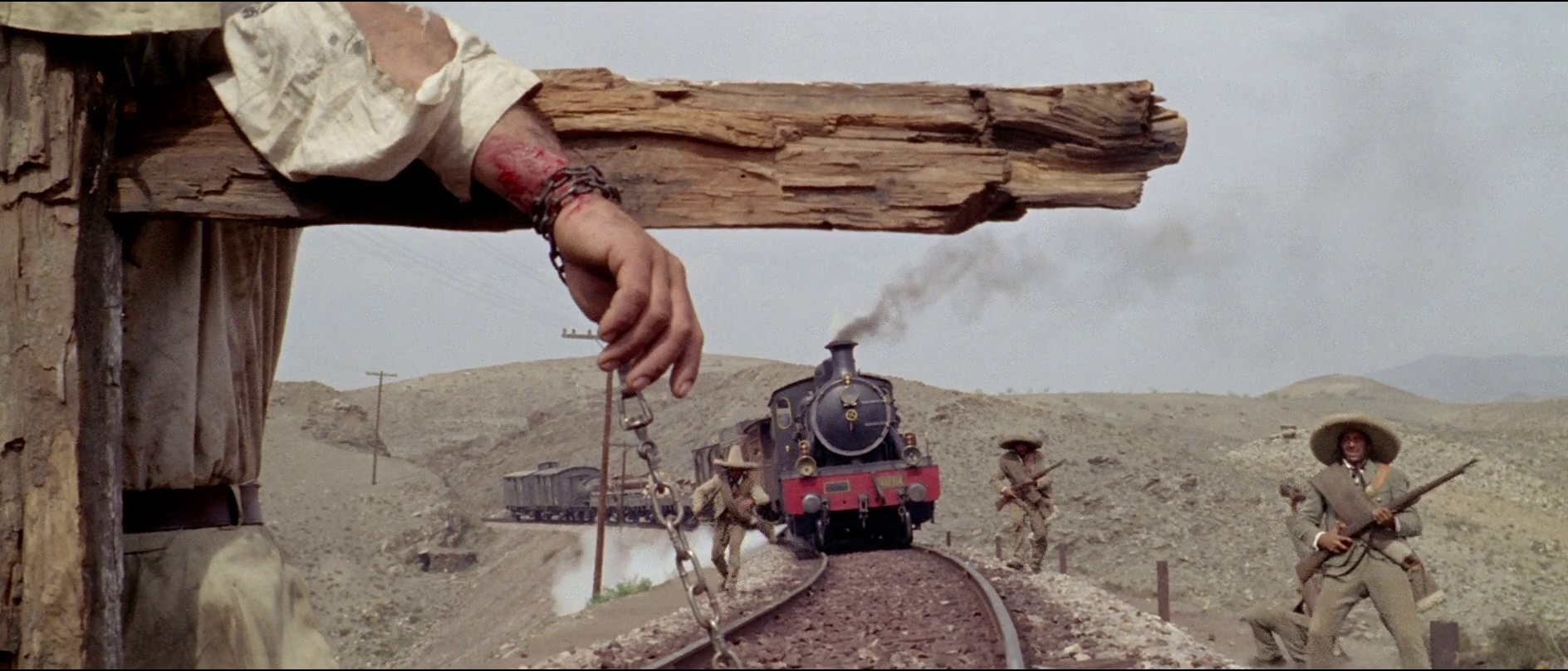 ▲反政府ゲリラに見方する感じで列車運転手を殺して列車を停め、序にゲリラ集団と仲間になる御都合主義的物語がモロにマカロニウエスタン映画!