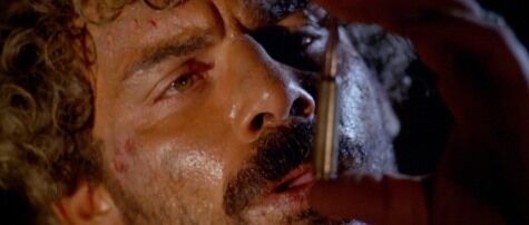 ▲安易な陽動作戦で捕虜役でメキシコ政府軍事務所に入り込むジャン・マリア・ヴォロンテに対して、髭を執拗に毟り取る政府軍のお笑いシーン!しかし1ミリも面白くないけどね。