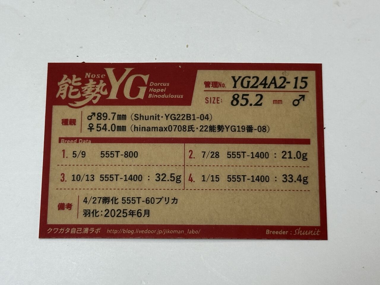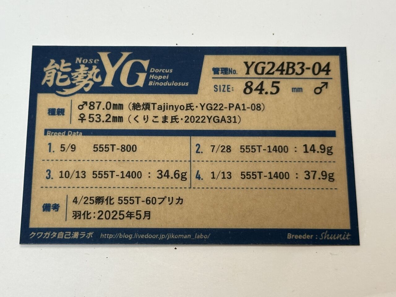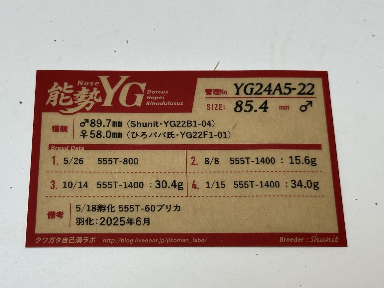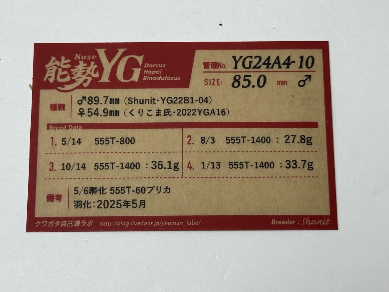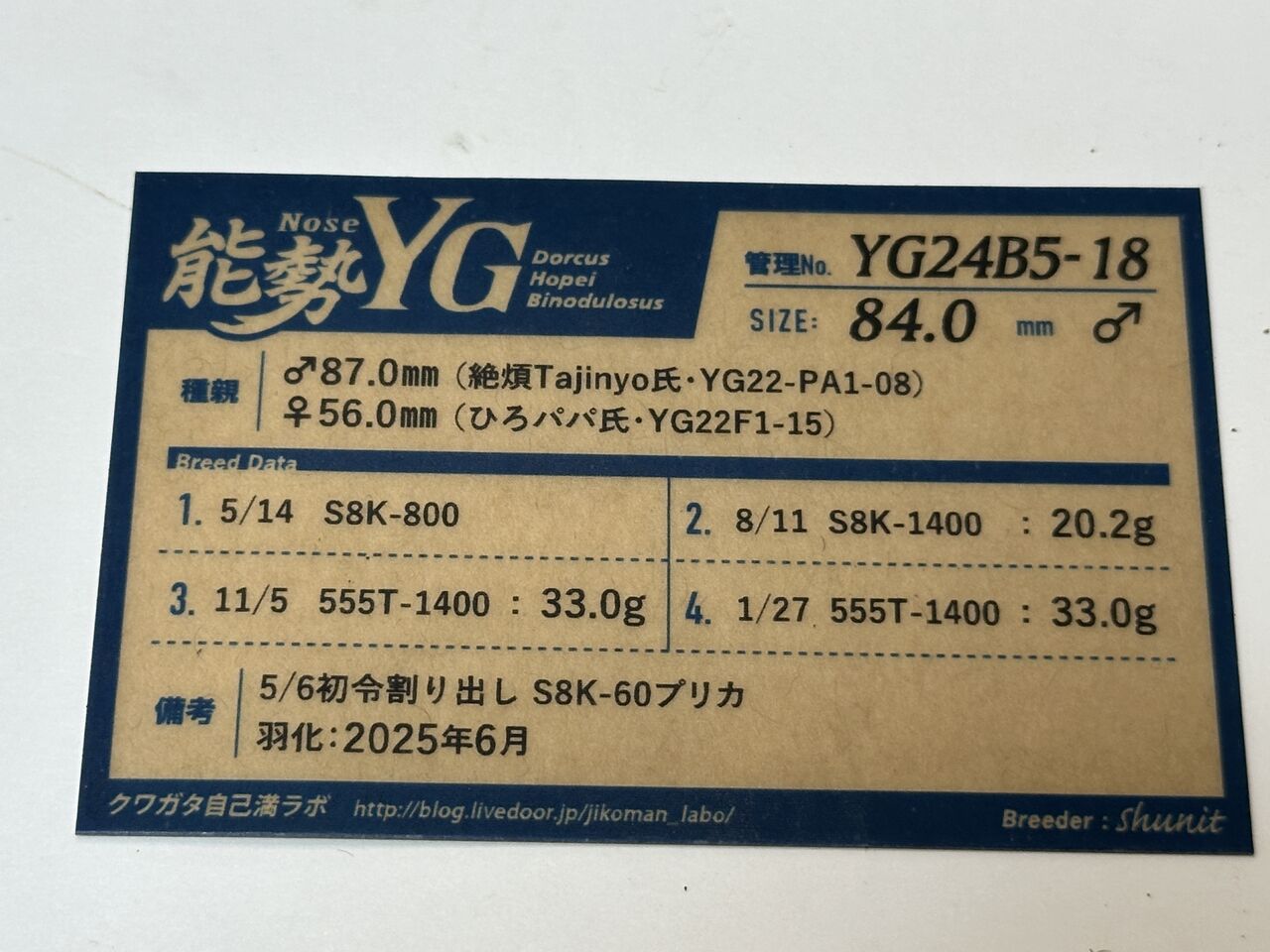 ♂84.5mm(YG24D2-02)2025年5月羽化、後食済み
