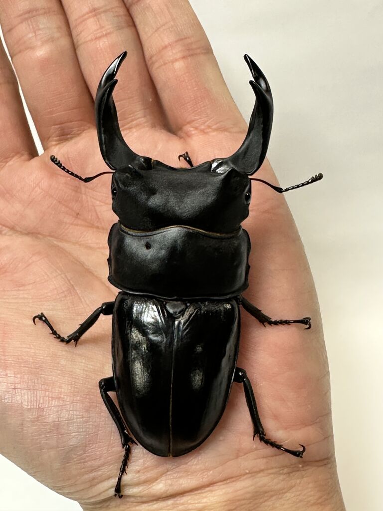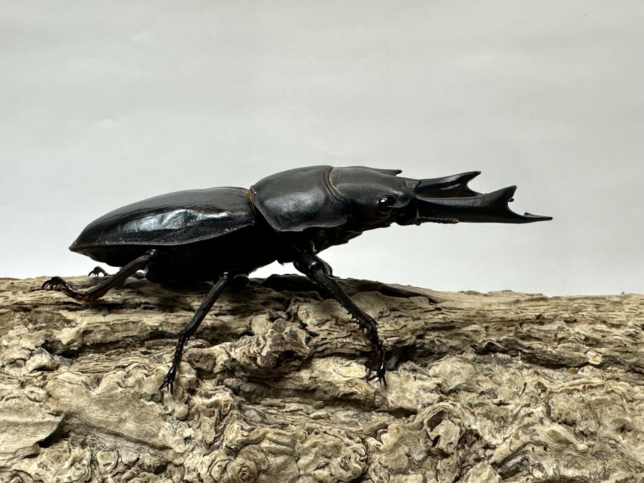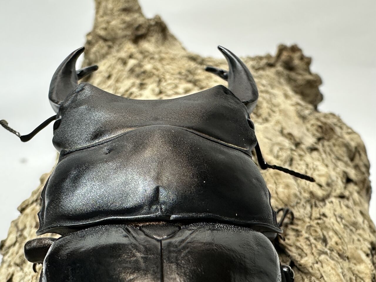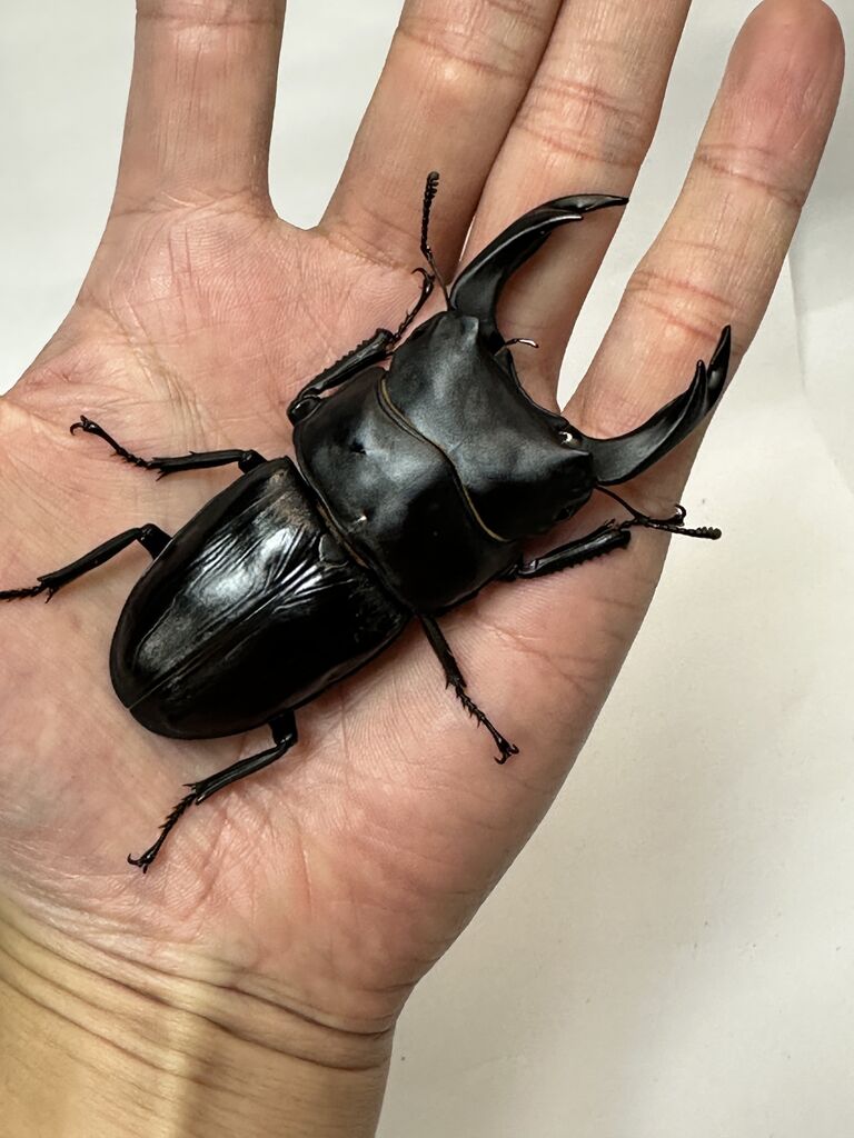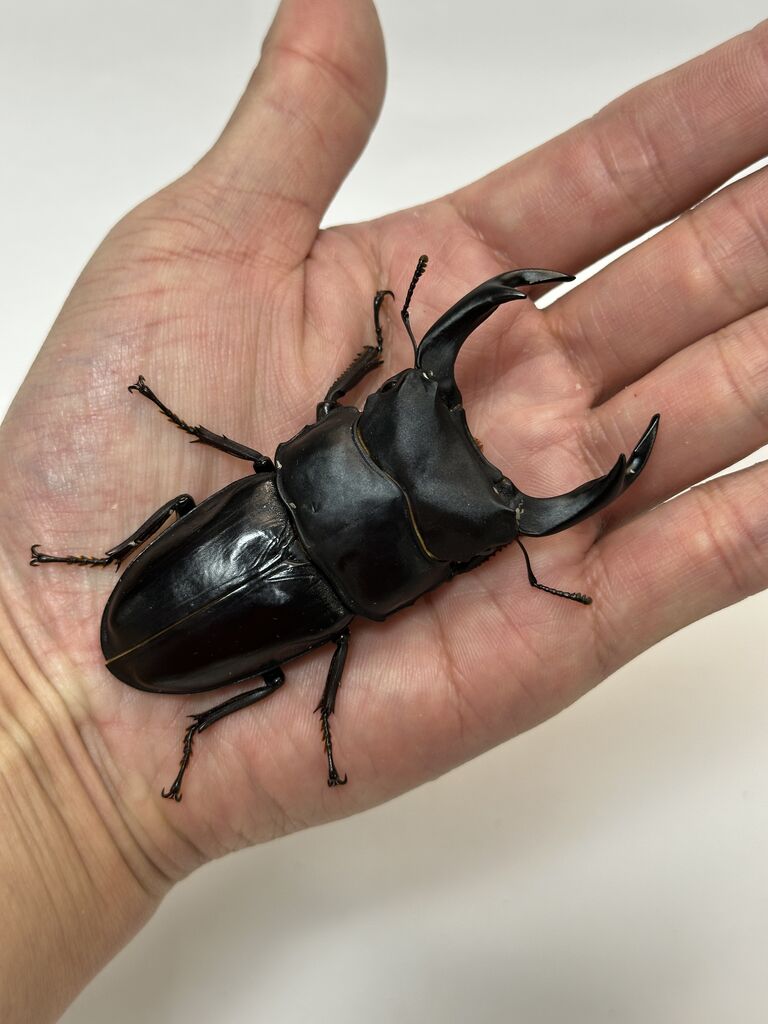 ♂84.5mm(YG24B3-04)2025年5月羽化、後食済み(右アゴの方がわずかに長いです)