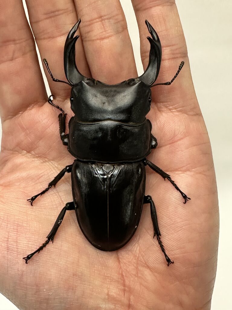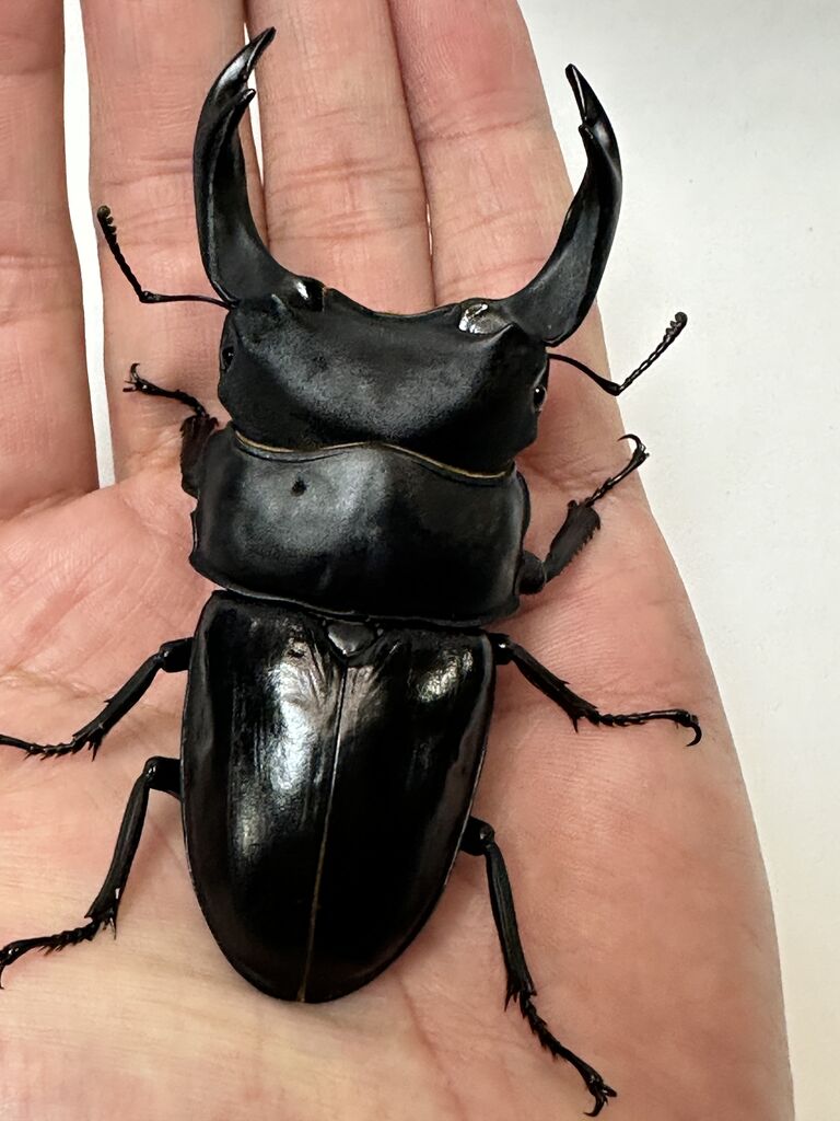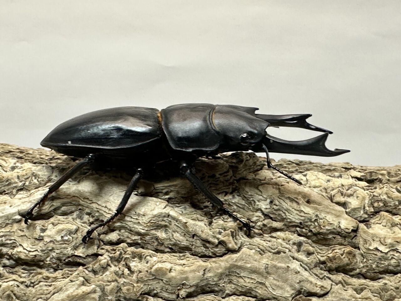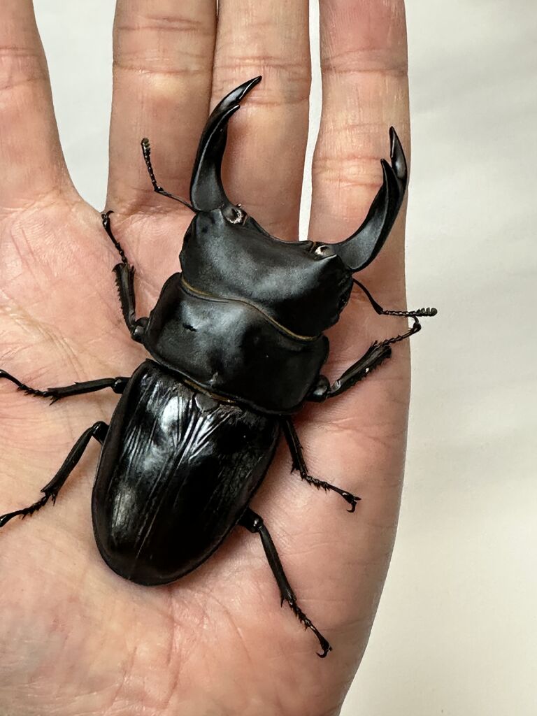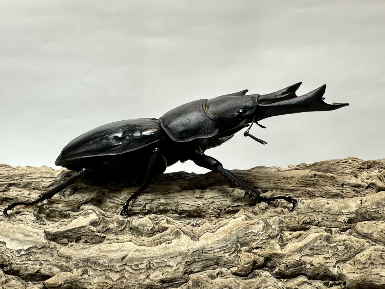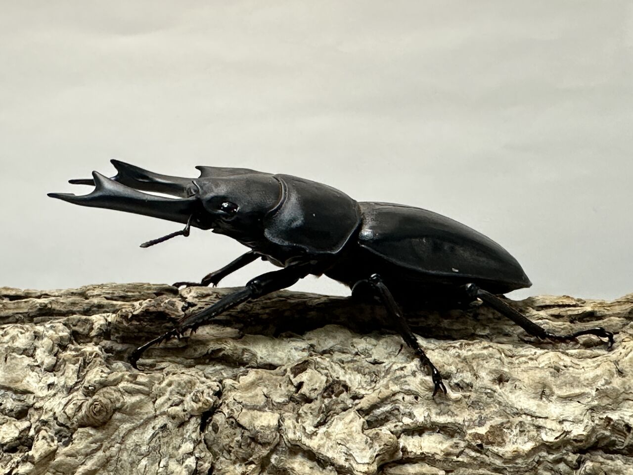 ♂84.5mm(YG24B3-04)2025年5月羽化、後食済み(右アゴの方がわずかに長いです)