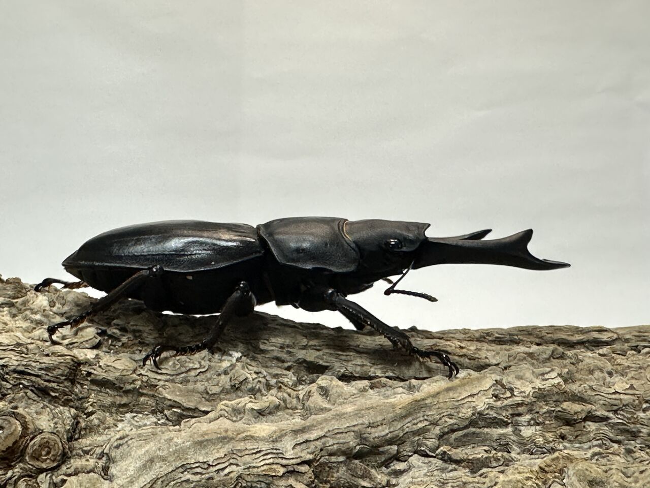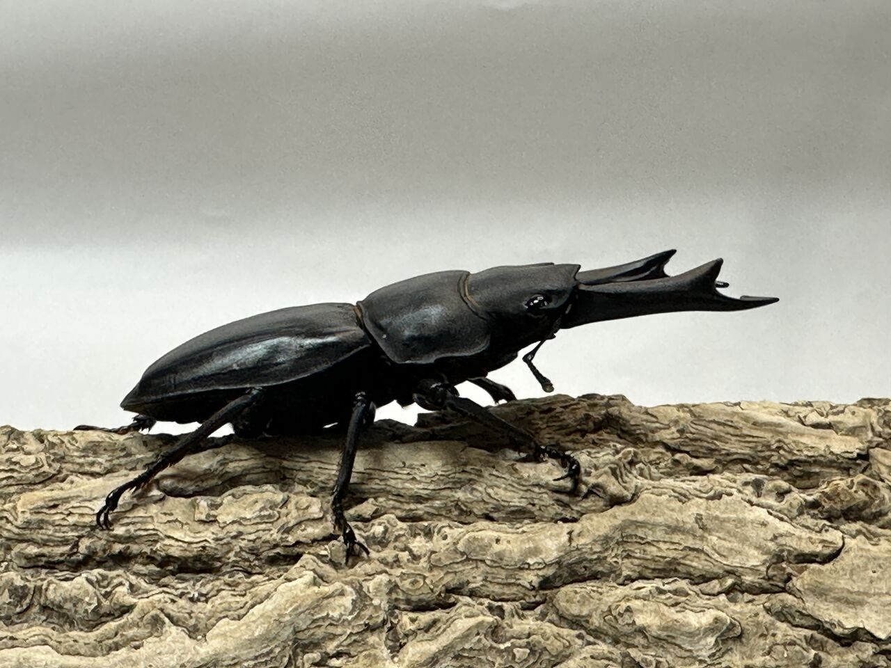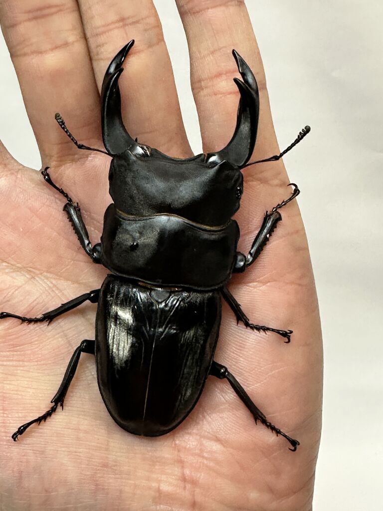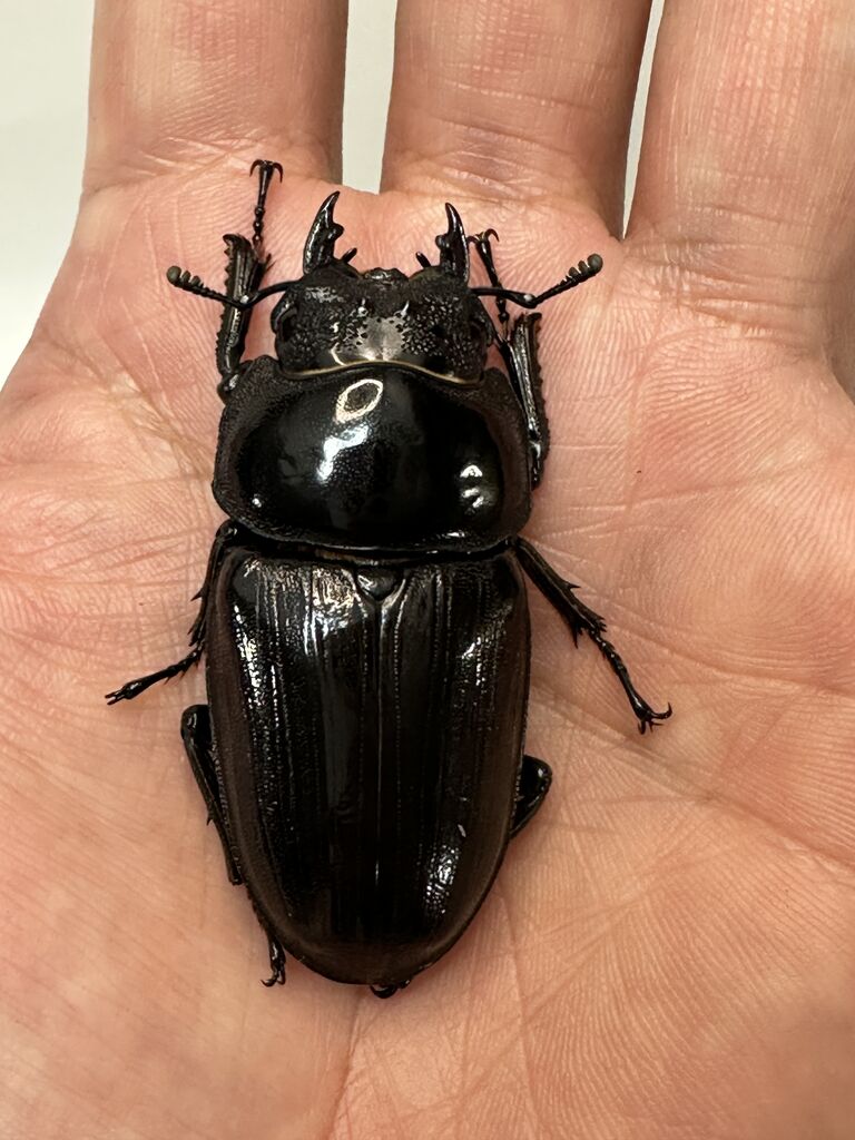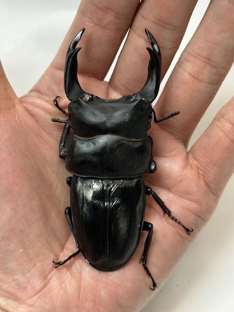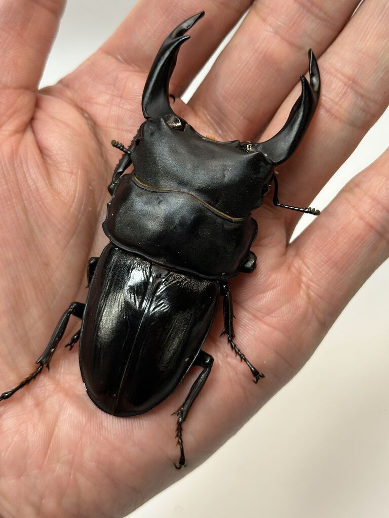 ♂84.5mm(YG24B3-04)2025年5月羽化、後食済み(右アゴの方がわずかに長いです)