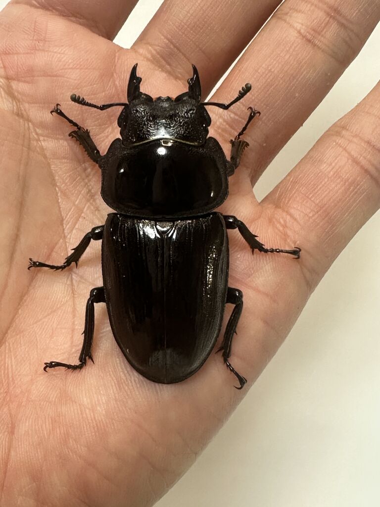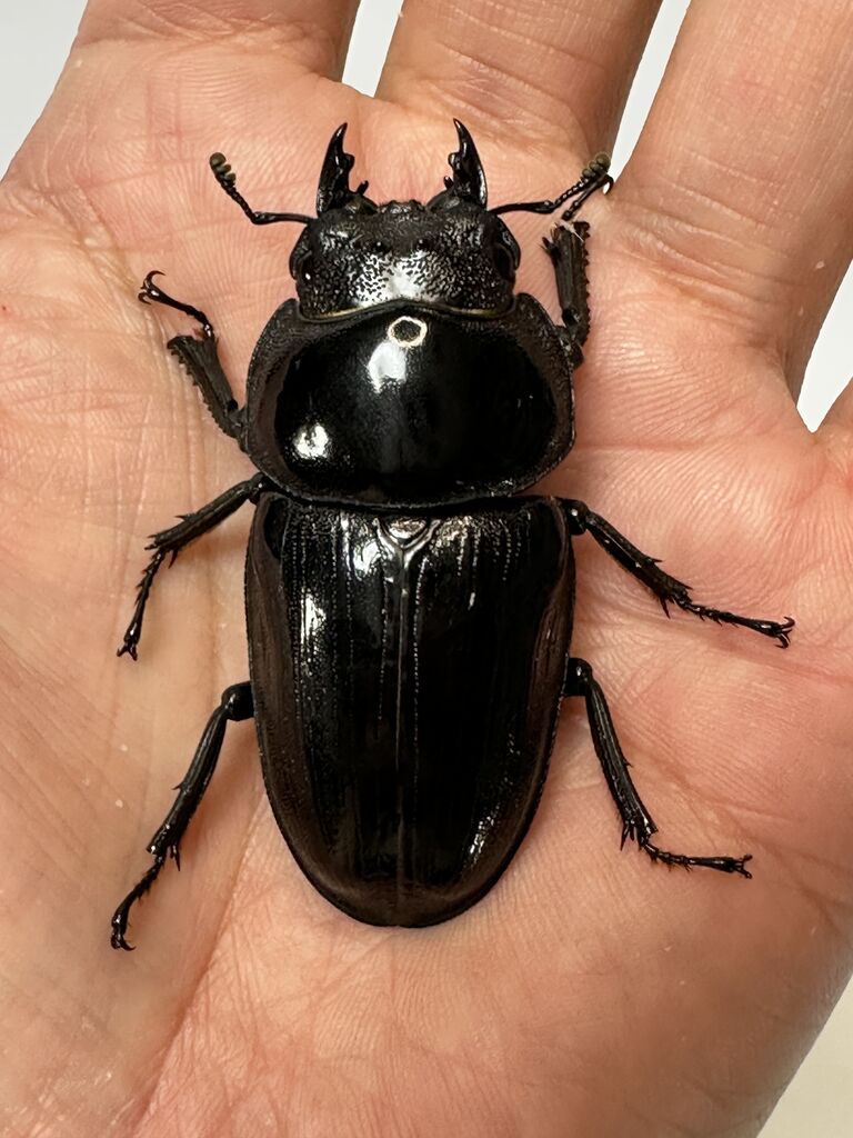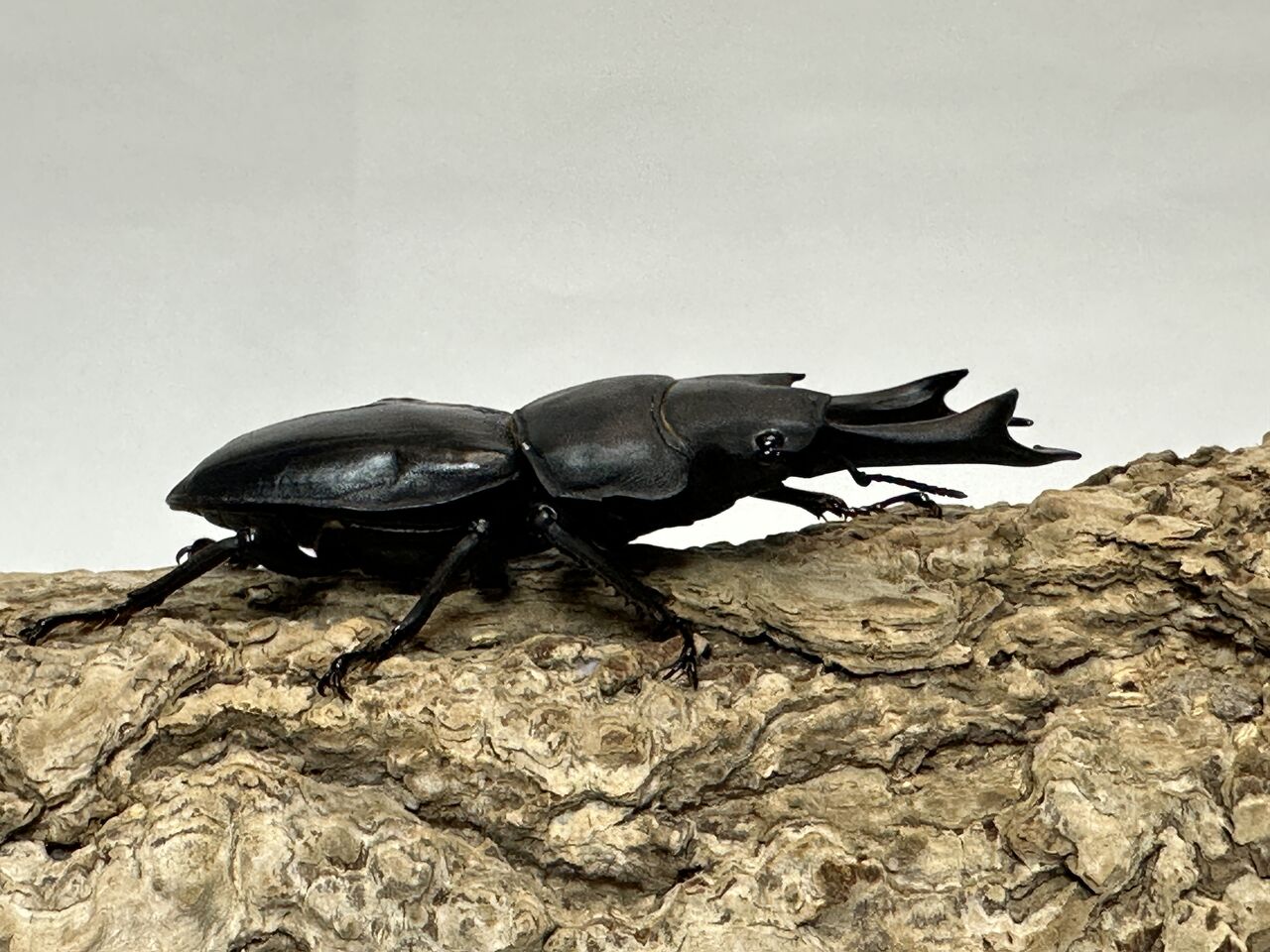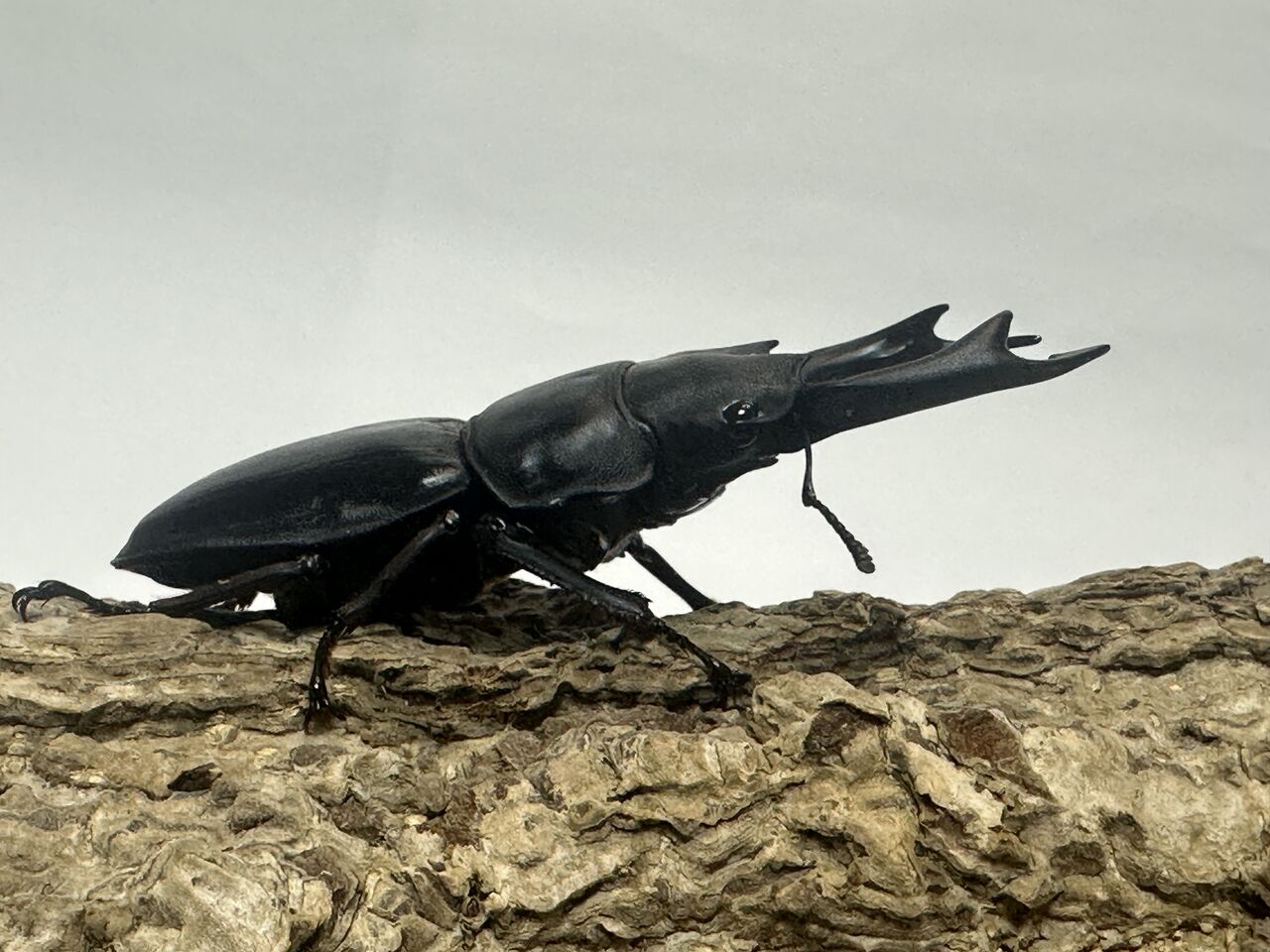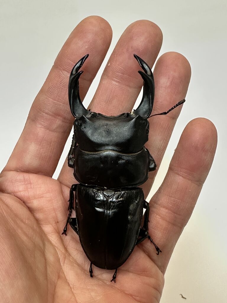♂84.5mm(YG24B3-04)2025年5月羽化、後食済み(右アゴの方がわずかに長いです)