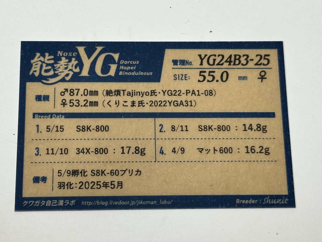 ♀55.0mm(YG24B3-25)2025年5月羽化、後食済み