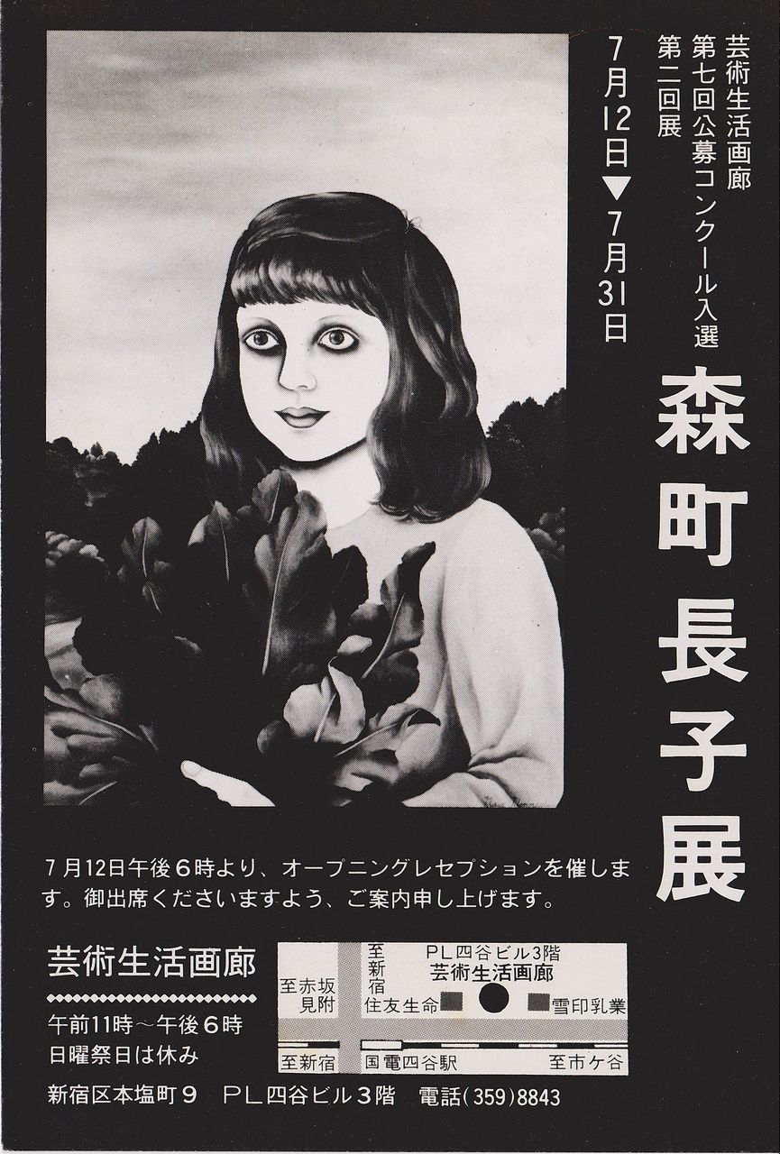 1971年には芸術生活画廊第7回公募コンクールに入選、同年、芸術生活画廊で初個展と、その画才はすぐに発揮されます。その後も、73年、74年、少し間が空いて79年~82年、86年と個展を開催しますが、87年の個展を最後に作品の発表が途絶えます。70年代には美術雑誌『芸術生活』で採り上げられたりしていましたが、画家は作品を発表しなくなると、あっという間に忘れられてしまいます。作品だけはポツリポツリとコレクターから出てきても、誰もその作家のことを知らないという現象が容易に発生するわけで、まさに森町さんはそのような存在と言えます。