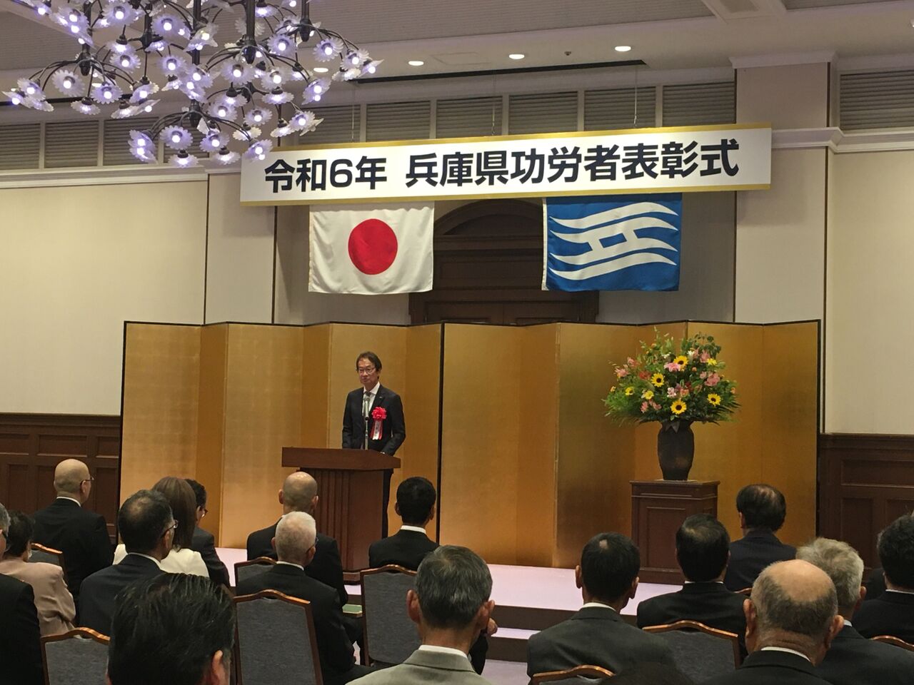 2024年05月31日 兵庫県功労者表彰式 5月31日、標記表彰式が県公館で開催され、県政の伸展や公共の福祉増進に功労のあった方など22部門211名に対して、表彰状が授与されました。県議会を代表して出席し祝辞をお贈りしました。
