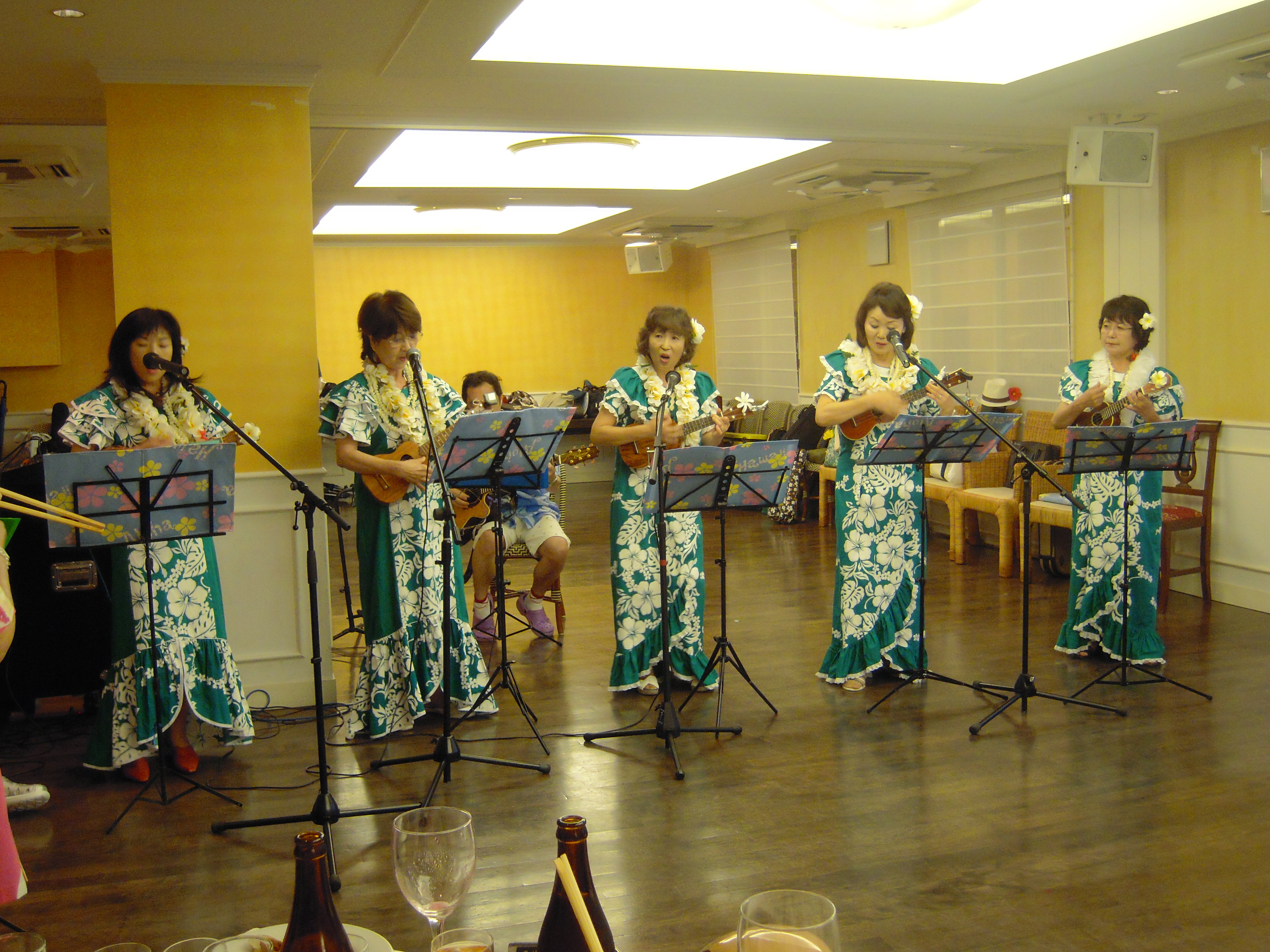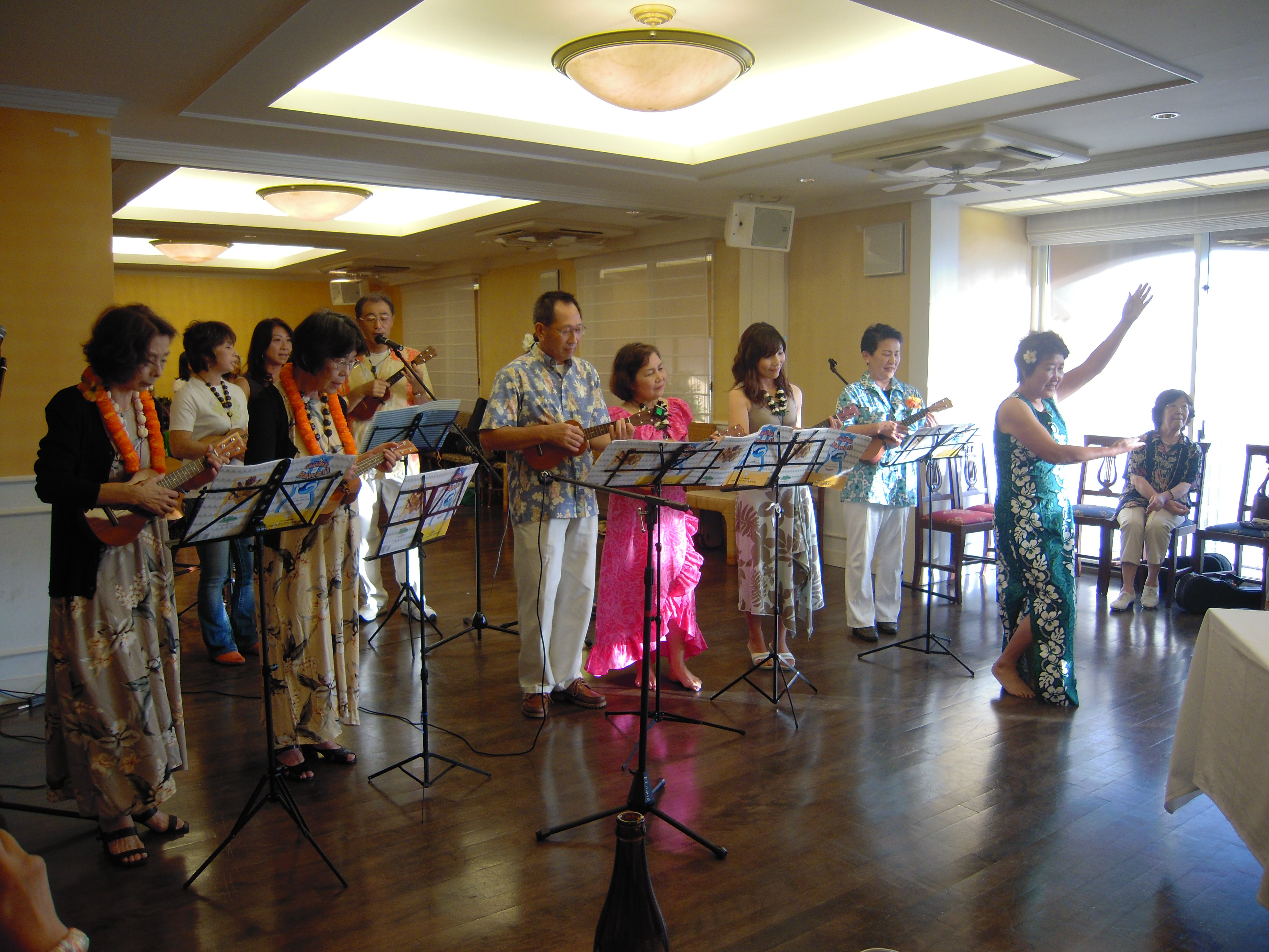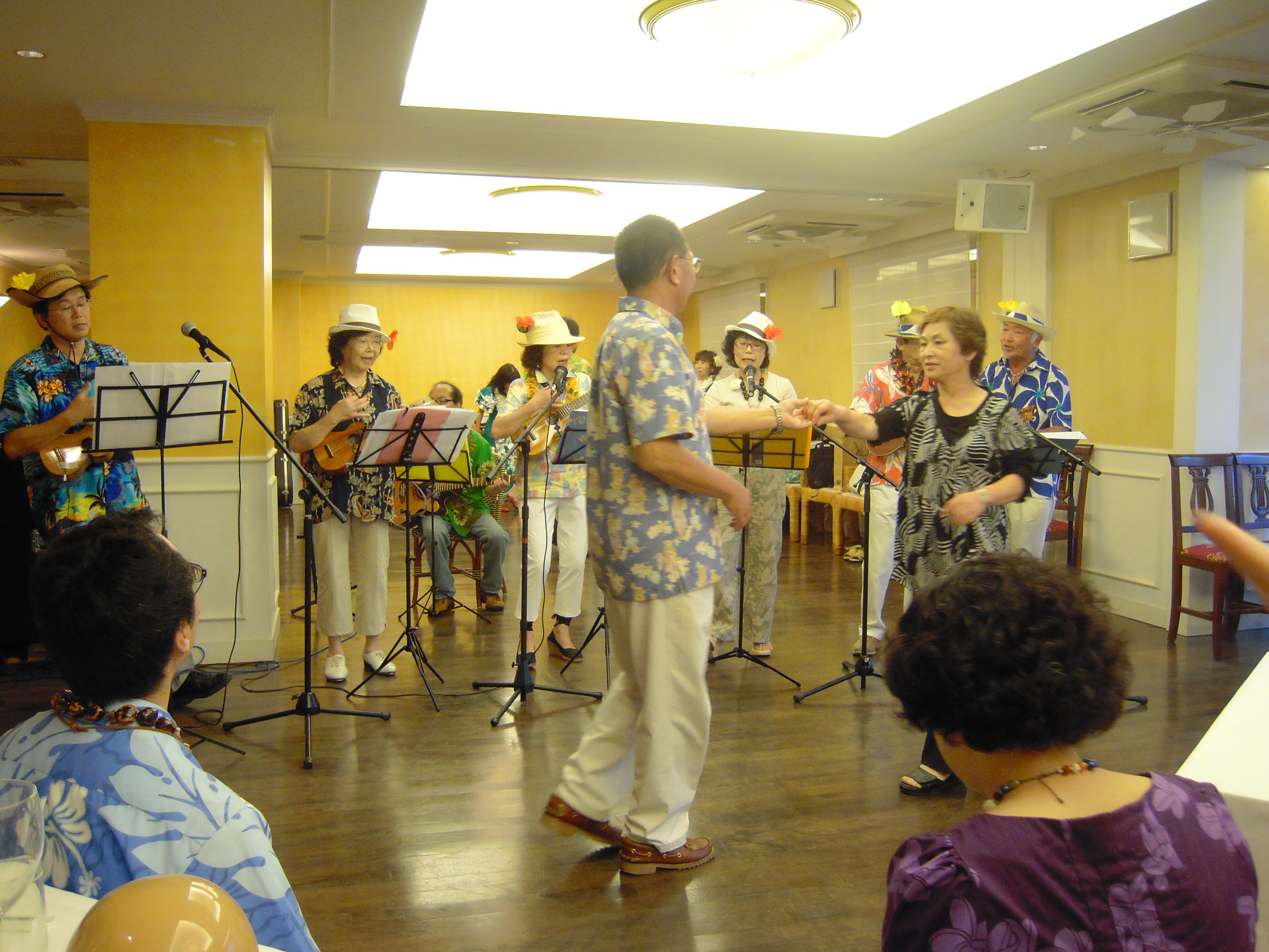 ハワイアンパーティを開きました 参加者80名で大賑わいです出演リスト