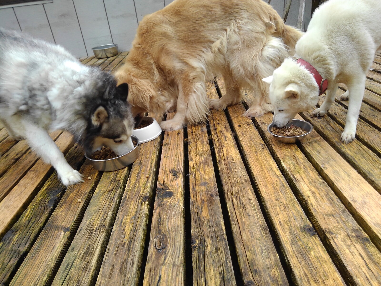 長期お預かりゴールデン小太郎くん、ハスキー粋くんしっかり完食しました。