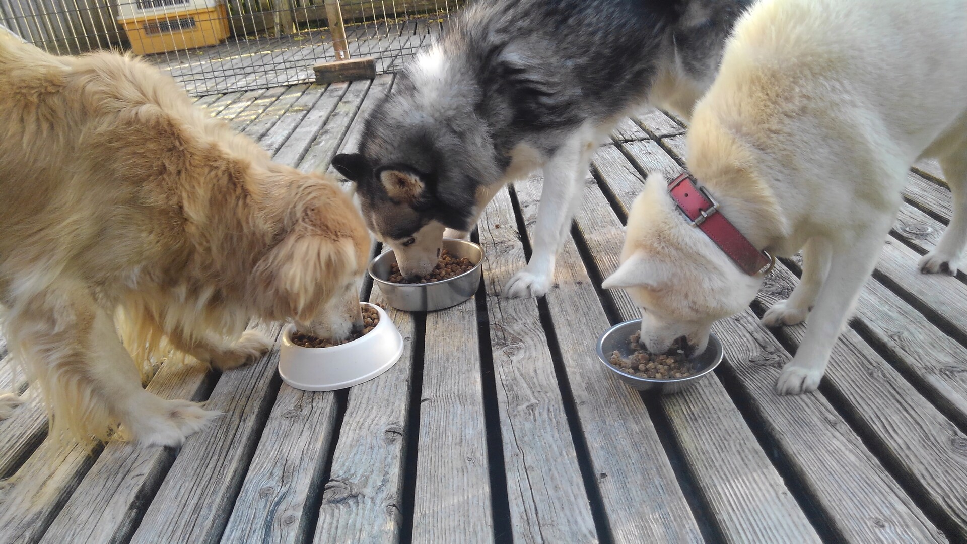 長期お預かりゴールデン小太郎くん、ハスキー粋くん、トイプーゆずちゃんしっかり完食しました。