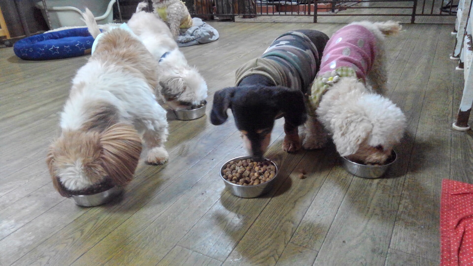 老犬ホーム 軽井沢ペットホテル 夕ごはん風景