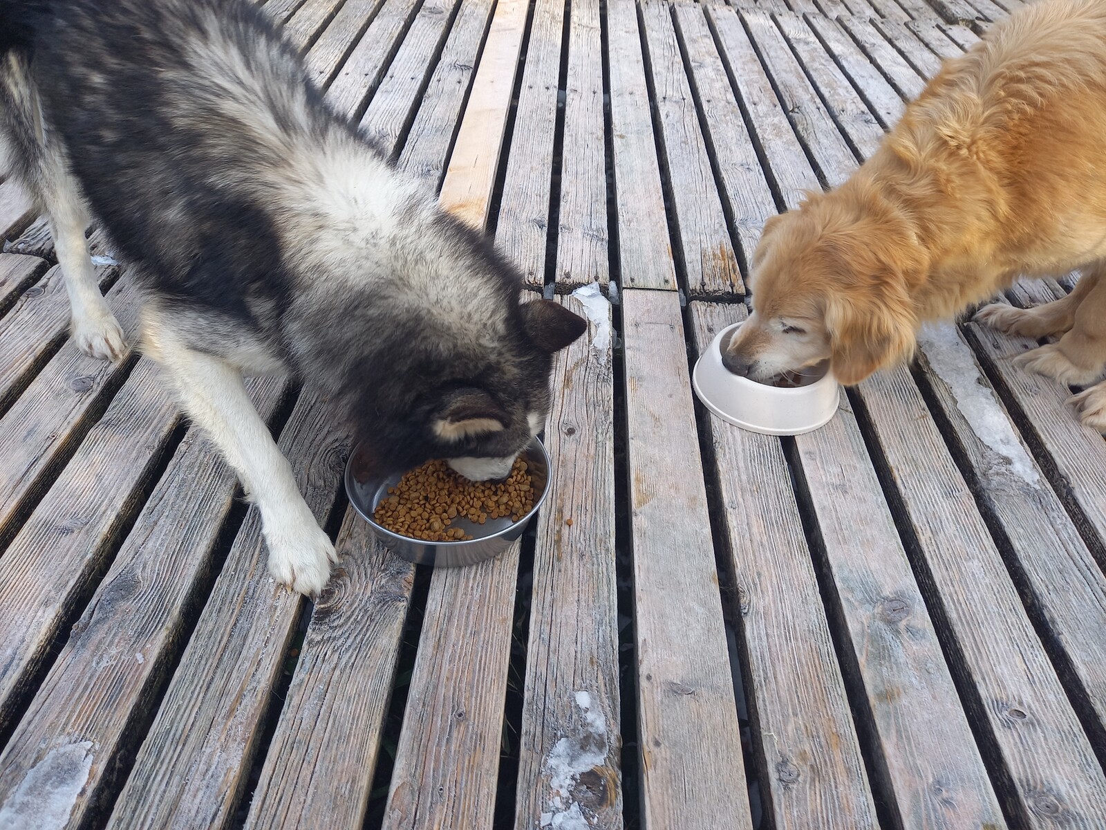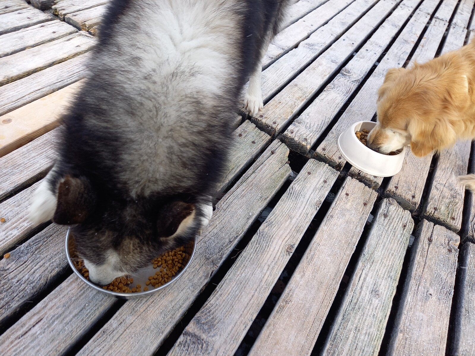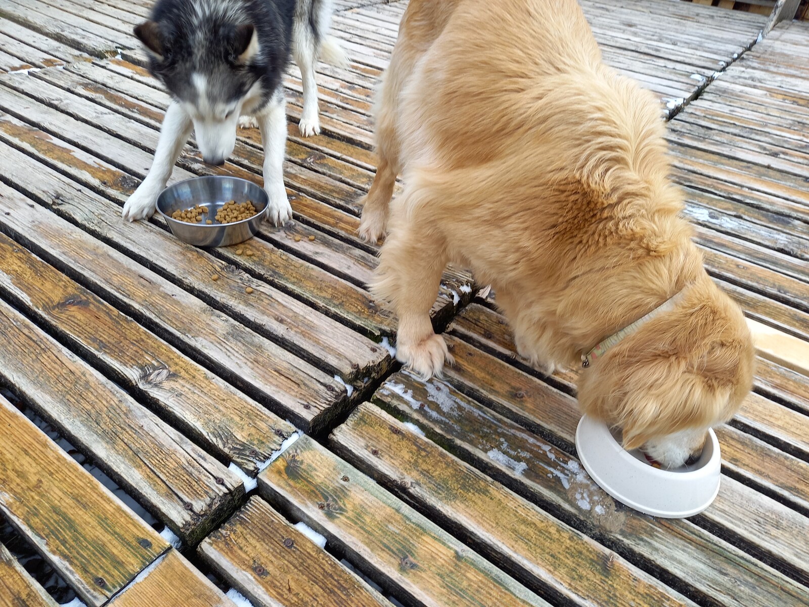 長期お預かりゴールデン小太郎くん、ハスキー粋くんしっかり完食しました。