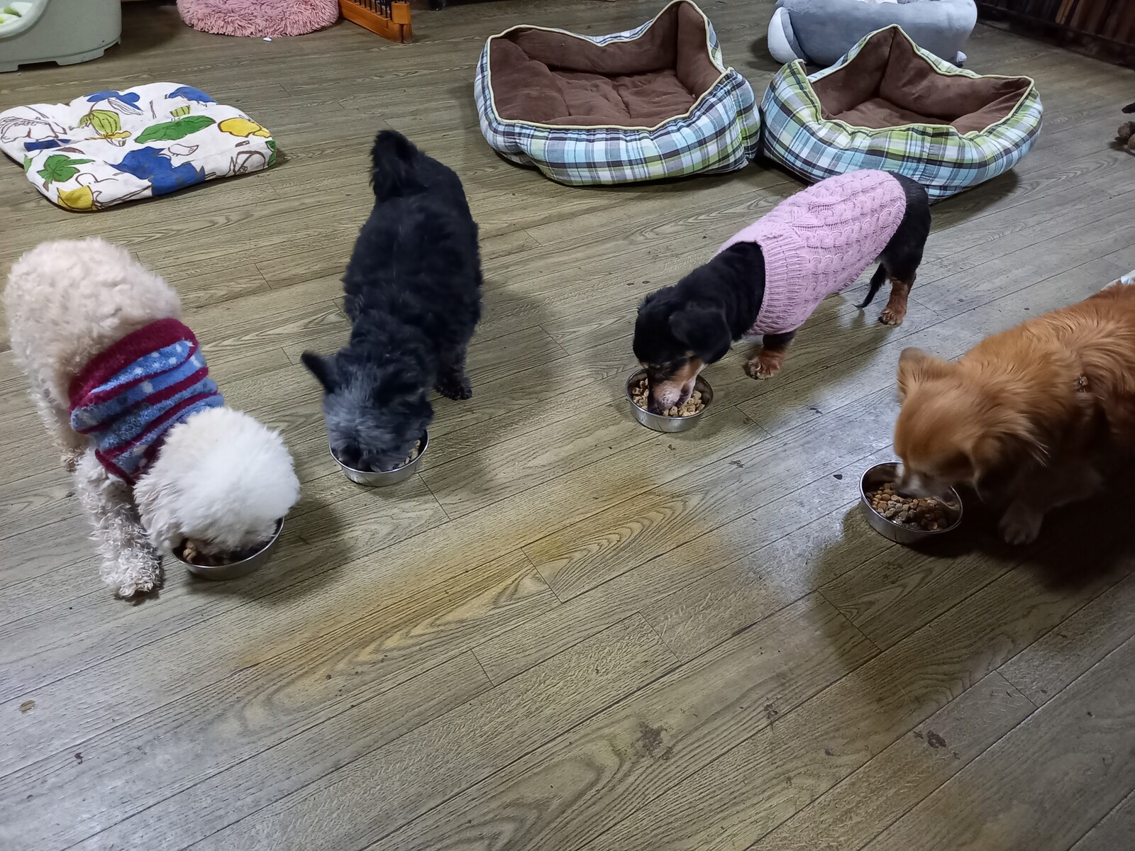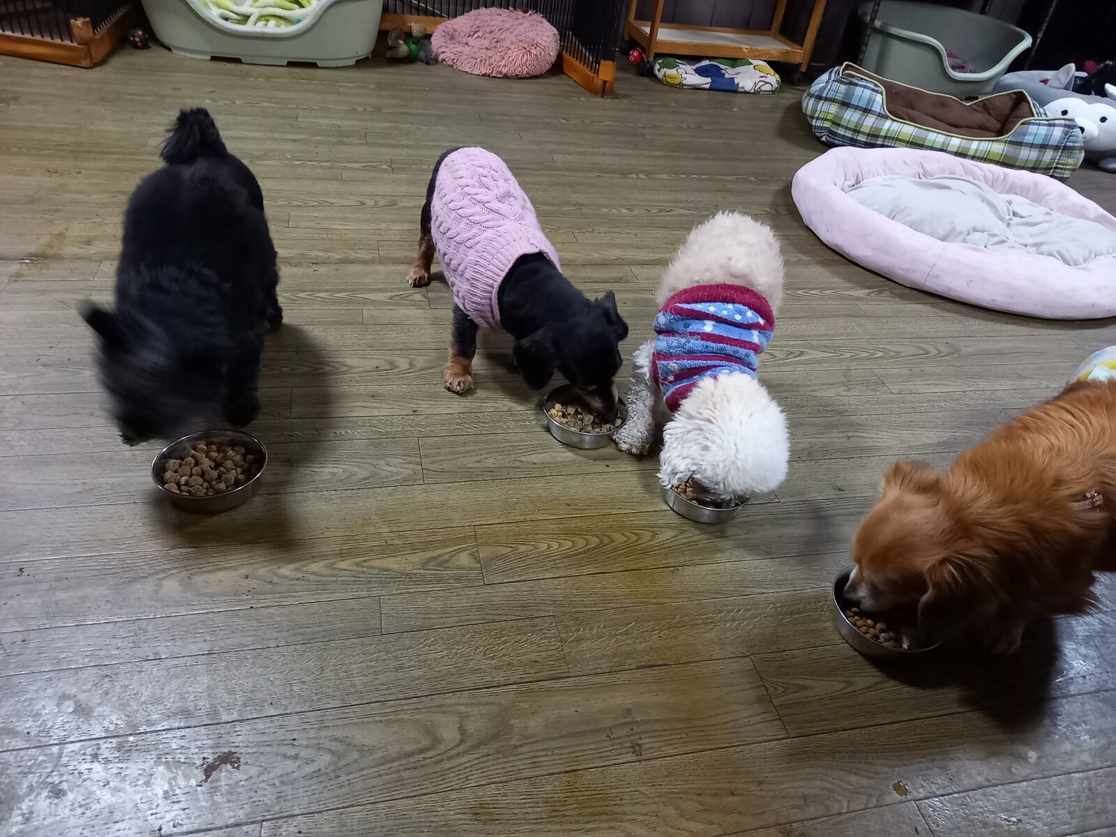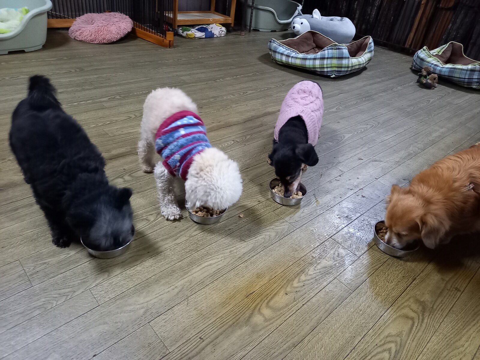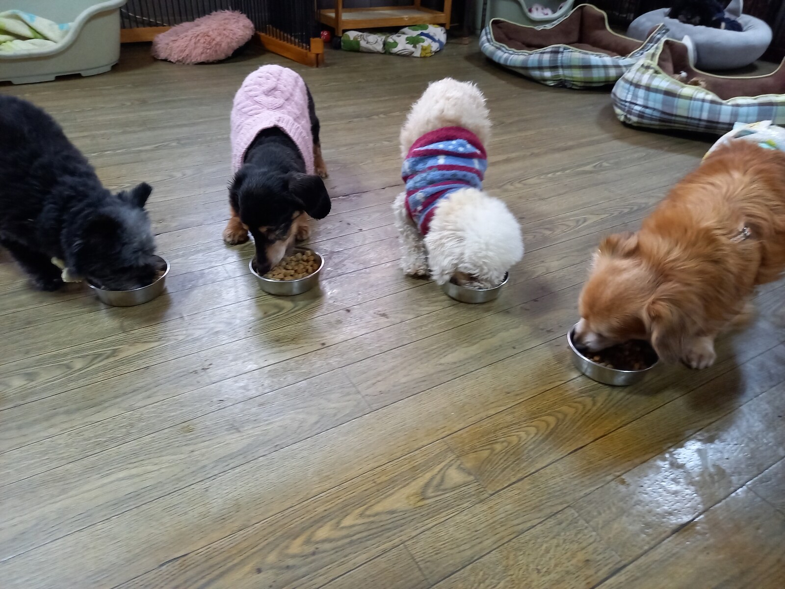 老犬ホーム 軽井沢ペットホテル 夕ごはん風景