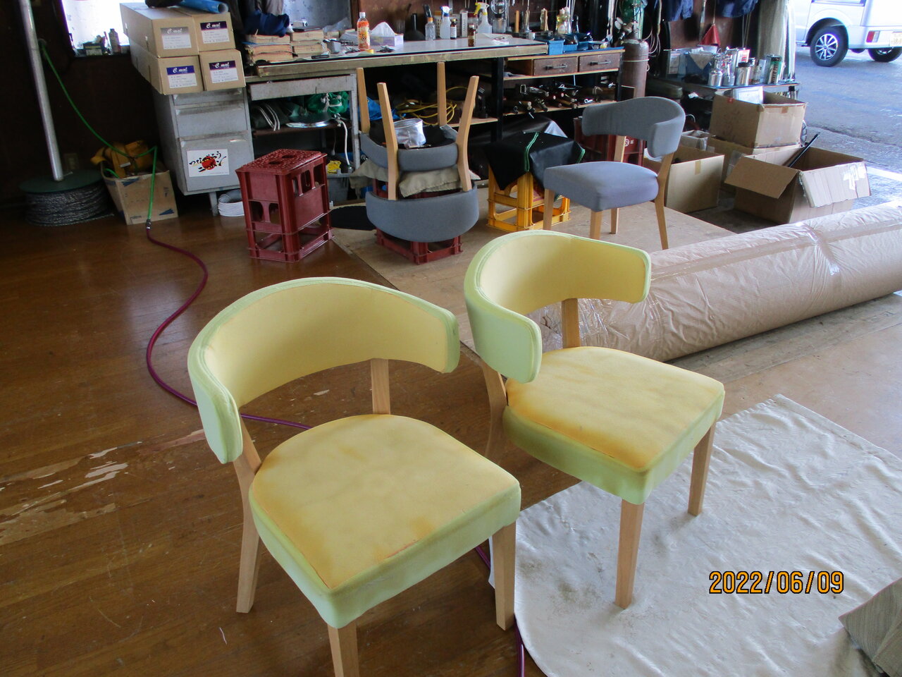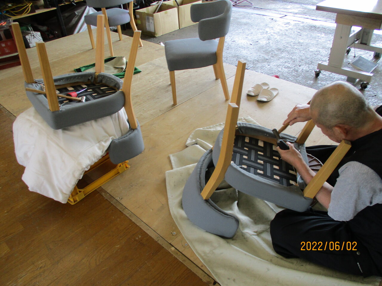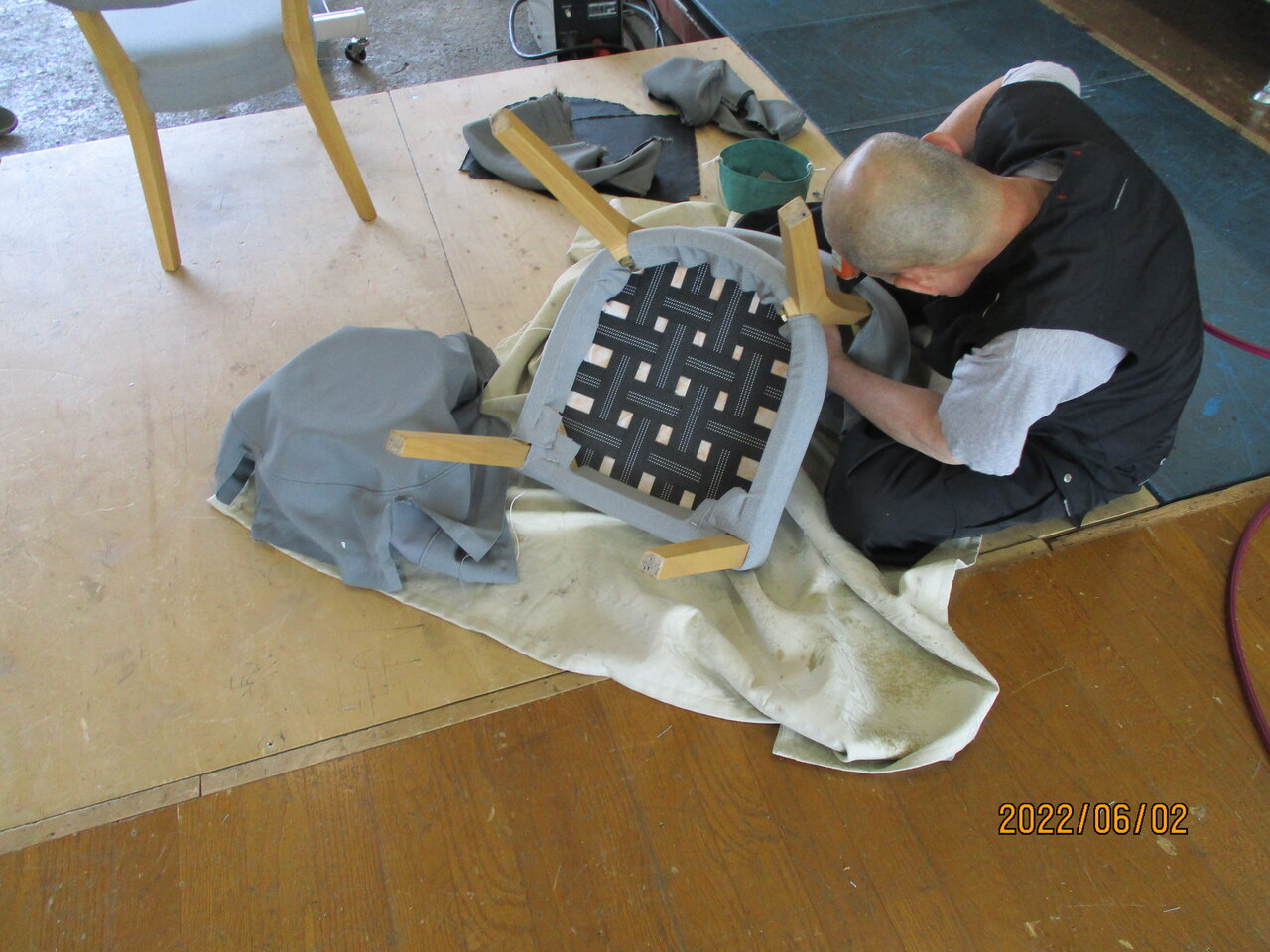 食堂の椅子の張り替え