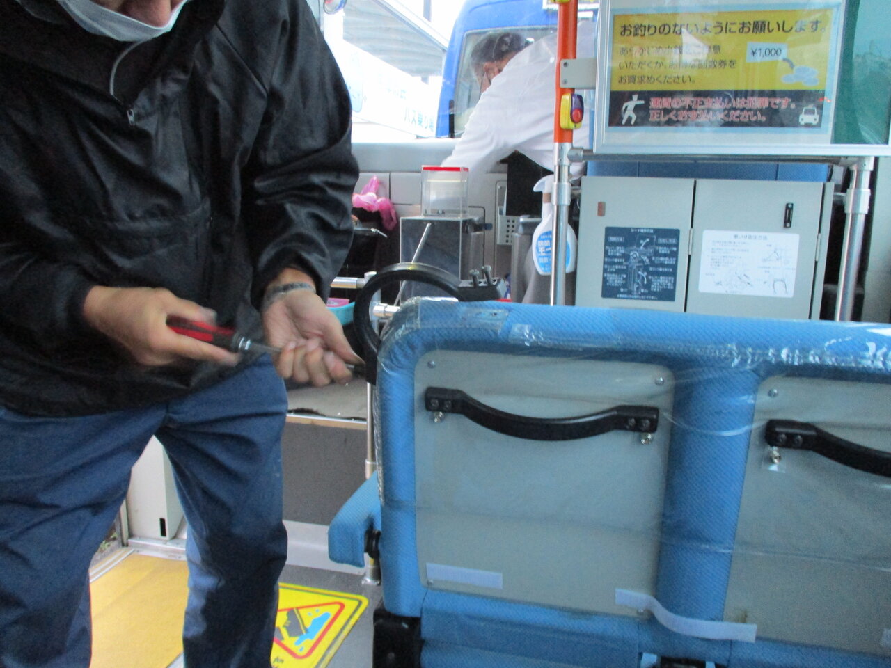 バスの取っ手取付とビニールシート張替え