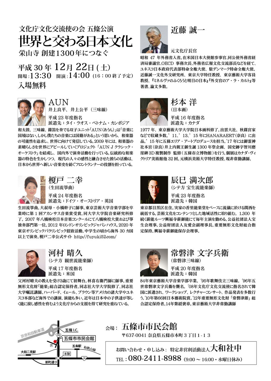 美術・工芸の展示や、音楽・能・演劇など多彩なプログラムで