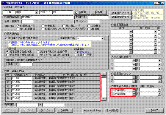 工程別収集項目、収集設定マスター、作業内容マスターは次の様に設定します。