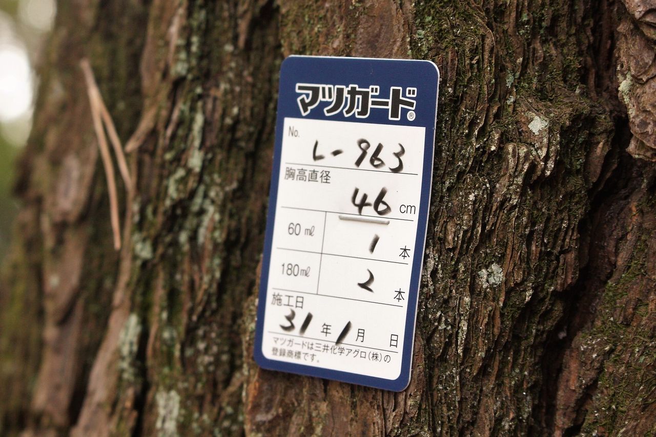 元が自然の松林とは言え、現在は行政の管理する公園なので、松枯れ防止剤の注入や老化木の伐採等の手入れが続けられています。