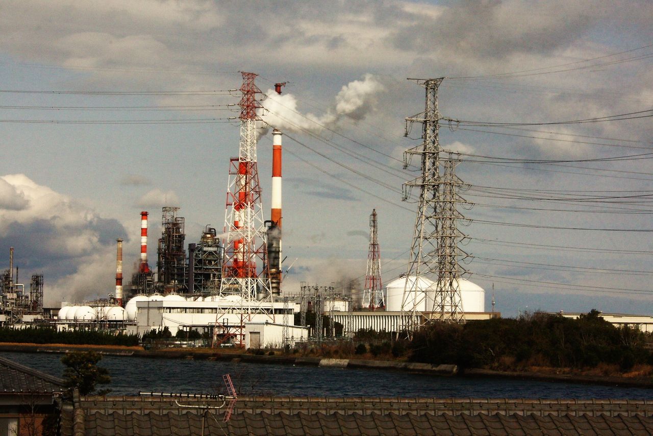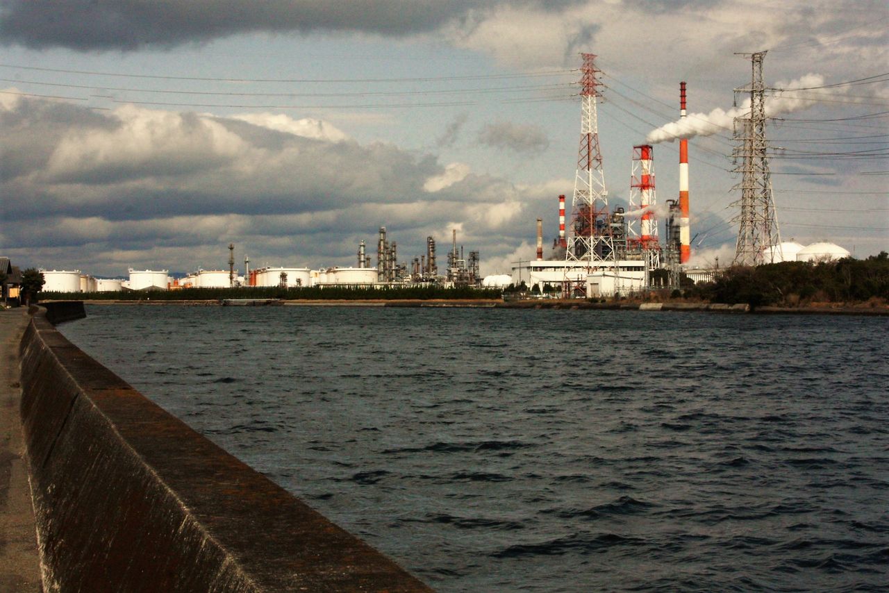 遠見山の山頂から北側の眺め。小中島川を挟んでJXTG製油所(旧 九州石油製油所)が見えました。