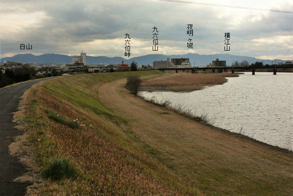 13:10 九六位山系の東側、鶴崎の町の向こうには白山も見えています。