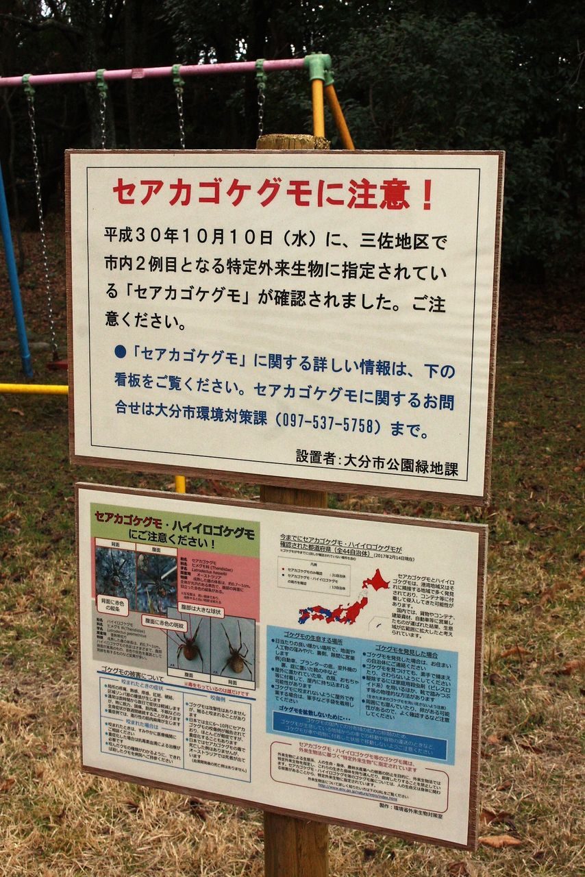 セアカゴケグモへの注意を喚起する立て札