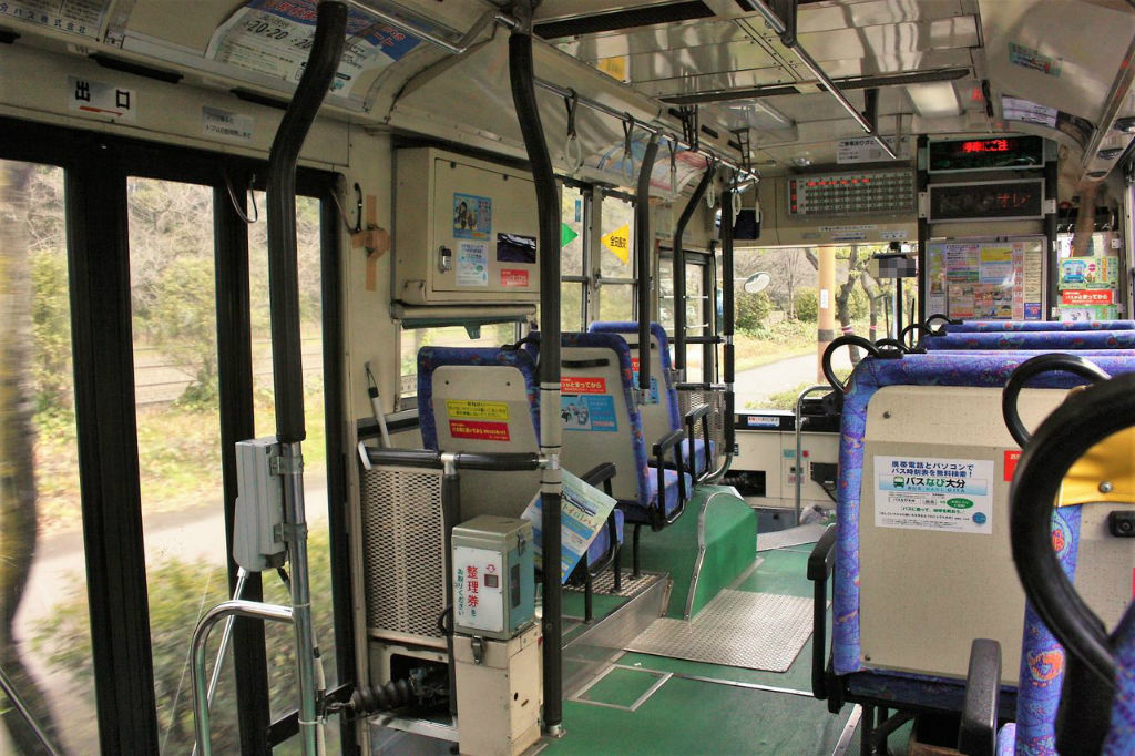 11:38 大分駅前より大分バスC50系統 三佐経由 鶴崎支所 行きに乗車。この系統の運転本数は少なく、日中は2~3時間空く時間帯もあるため時刻の下調べが必須となります。