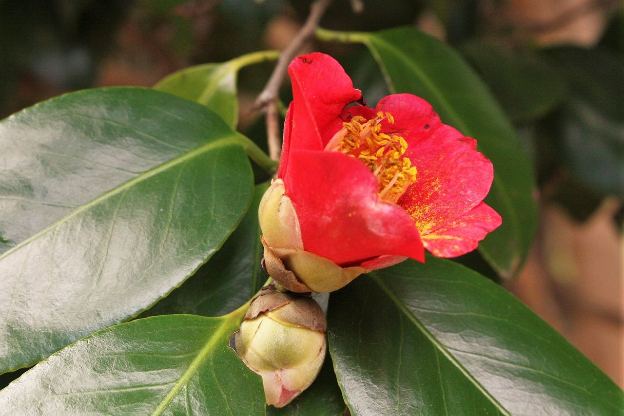 緩衝緑地にはヤブツバキが植樹されていて、開花の時期を迎えていました。