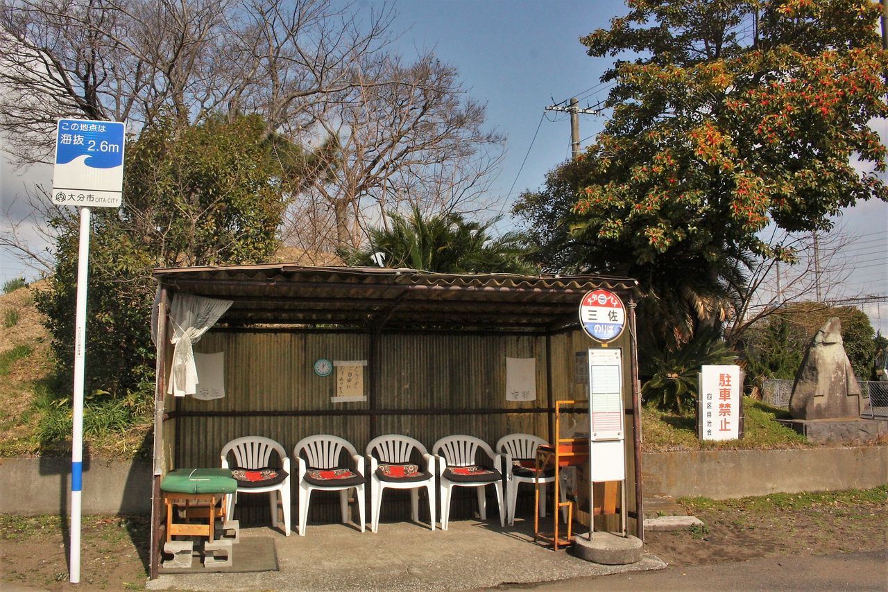 ここはバスの転回所も兼ねており、乗車してきたバスは来た道を戻っていきます。大分バスC50系統は実質的には大分駅~三佐と三佐~鶴崎支所の系統を1本にまとめたものであり、三佐を跨いで乗車する人は多くないようです。