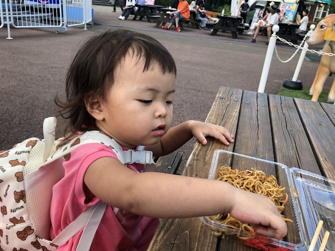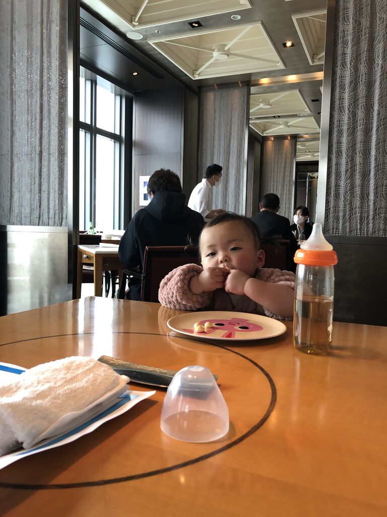 ちゃんと用意してくれたレストラン赤ちゃん食には目もくれず、卵ボーロを貪る。