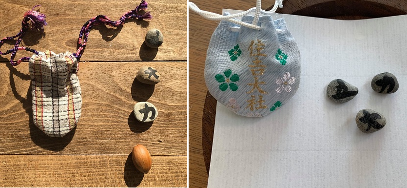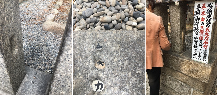 心願成就の「五大力」石守りは墨書の五・大・力・の三個を拾う
