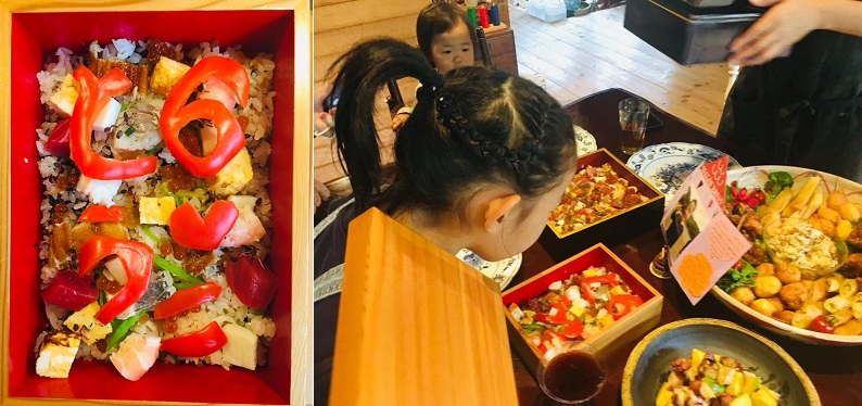 ふたを開ければ宝石箱のような「バラ散し寿司」を持って