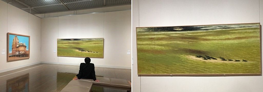 秋野不矩さんの展覧会は今回で4度目ですが、なくなる年に行って描かれたのか?アトリエで描かれたのか、93歳での「砂漠(アフリカのサハラ)のガイド」は祈るような画です。