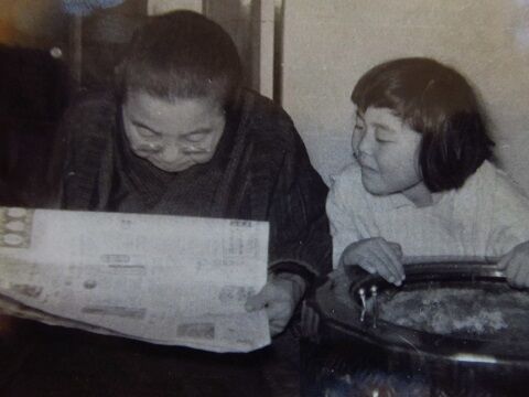祖母とヤンです。六角か八角の火鉢で青い色だったと思います。これも信楽焼きなのでしょうか?